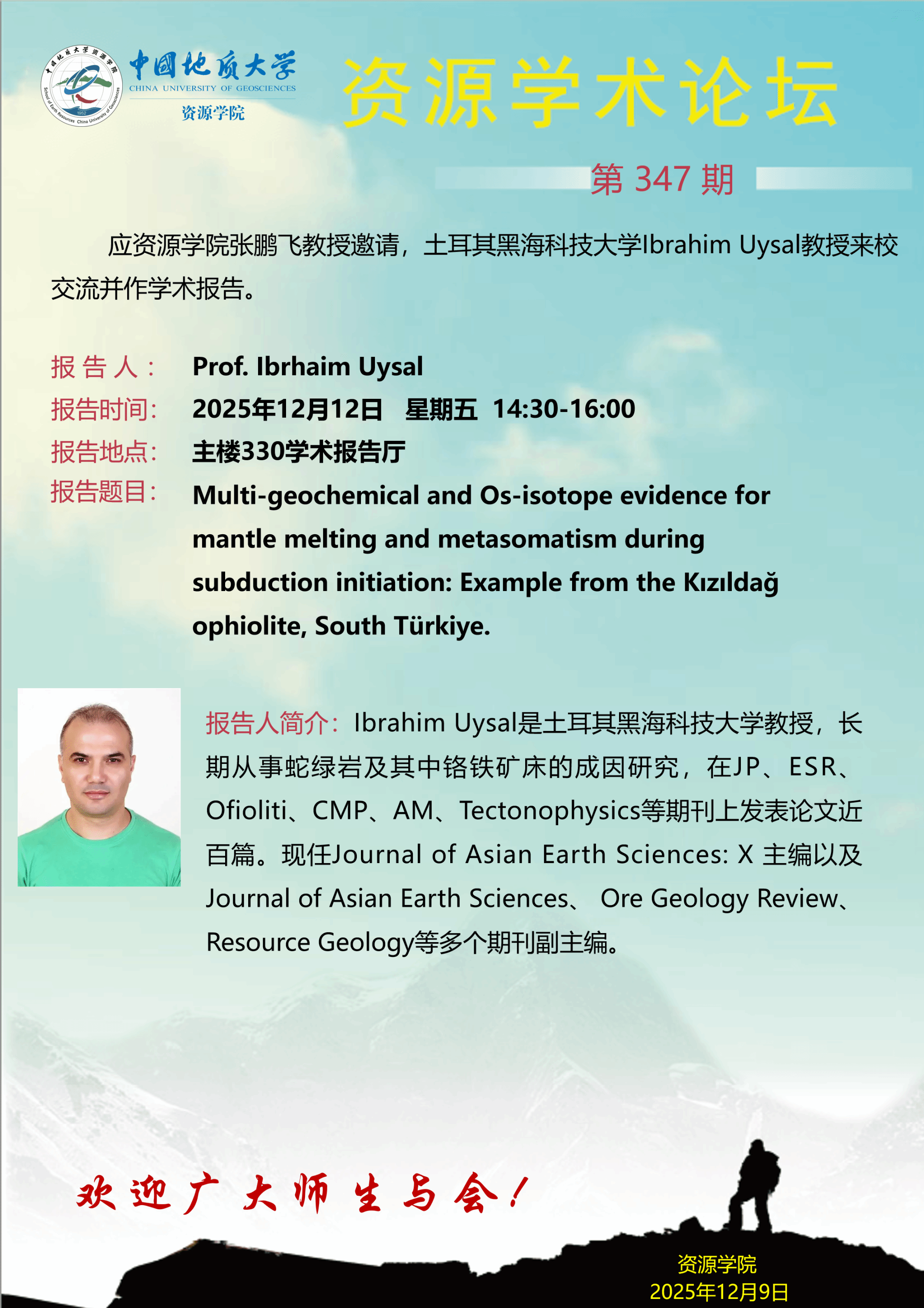 【12月12日】第347期资源学术论坛:Prof. Ibrhaim Uysal学术报告