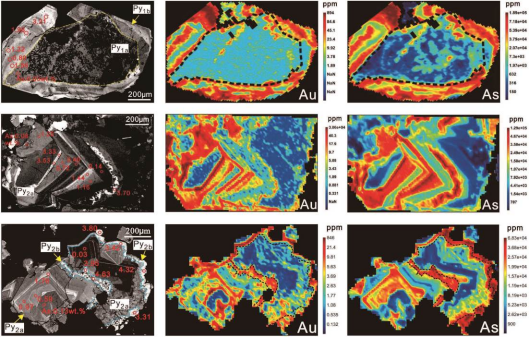 金矿床的形成通常经历了复杂的历史,如何甄别金成矿作用过程中“原生”和“活化”事件,精细重建成矿历史,对于正确理解矿床成因具有重要意义。黄铁矿是地壳中最为常见的一种金属硫化物,也是各类热液金矿床中最重要的载金矿物之一。黄铁矿的结构特征、微量元素组成以及硫同位素组成记录了成矿过程的大量信息,利用黄铁矿“矿物探针”结合微区原位测试技术为探索金矿床成因、精细刻画金成矿过程提供了新的窗口。