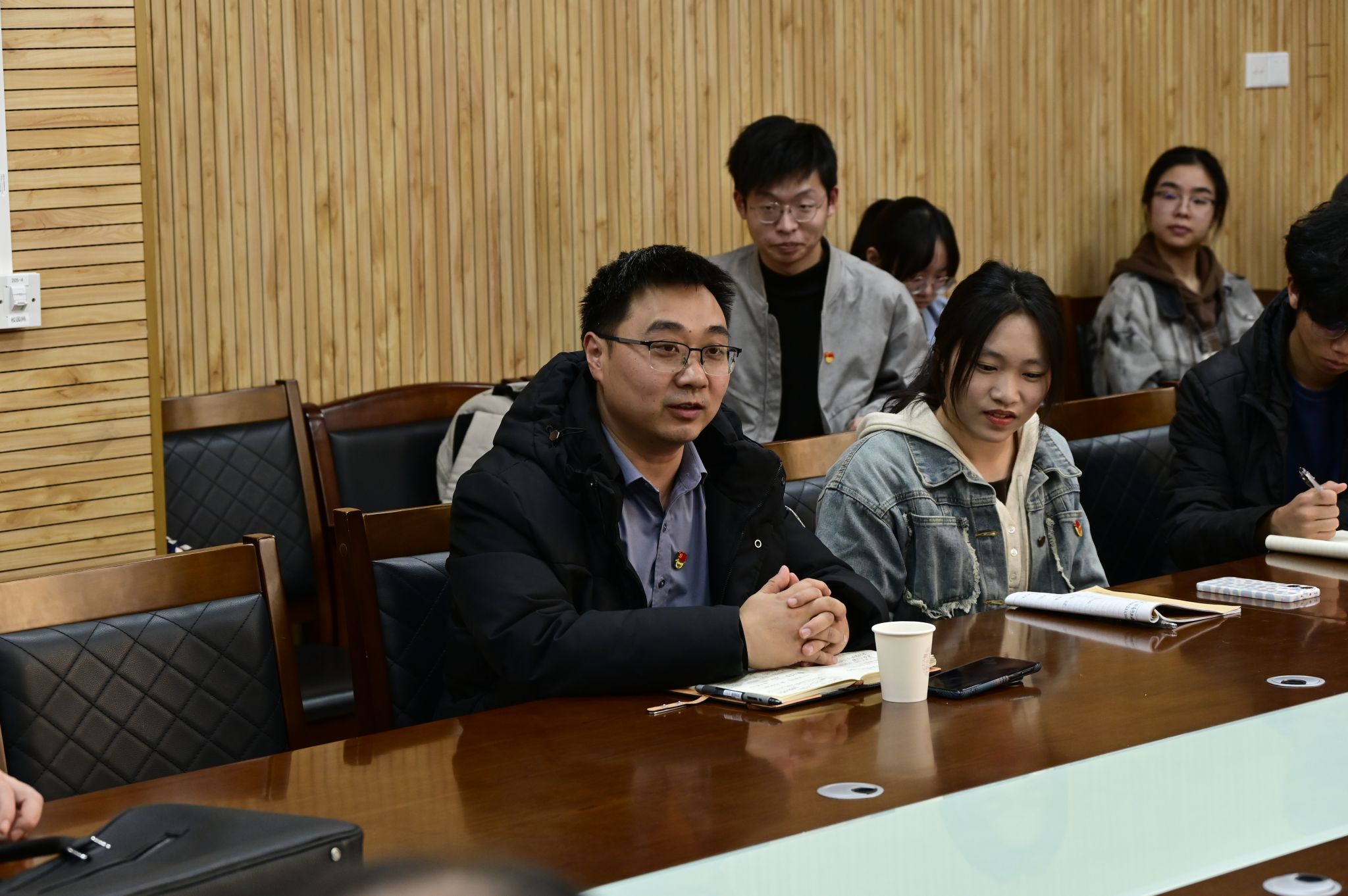 在交流发言环节,党员教师陈建国、夏庆霖,地学大数据第一党支部马俊、第二党支部张云凯,以及027251班团支部书记吴惠敏等师生代表结合党课内容与工作学习实际,分享了心得体会。