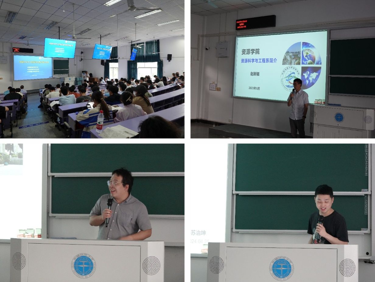 第二阶段开展了“资源科学与工程系师生面对面交流会”,旨在帮助大一员工选择合适的本科生导师,为大三员工提供选择读研和深造团队的建议,活动由刘文浩副主任主持。会上,赵新福主任首先介绍了资源系的概况,强调了资源系在科学研究和行业发展中的地位和优势,希望大一同学坚定专业学习的信心、大三同学积极选择适合的团队进行读研和深造。随后青年人才姚桌森老师分享了自己在地质领域学习和研究的乐趣,启发式的介绍自己选择专业和导师团队的心得,鼓励员工在面对选择时要忠于自己的兴趣和激情。苏治坤老师以“取经之路,就在脚下”为题,讲述了土生土长地大人从员工到教师的成长过程,强调平台、导师、个人学习和实践对于成才的重要性。赵新福、付乐兵、刘泽瑞、阮班晓、刘文浩、皮道会、陈鑫等老师分别介绍了自己所在研究团队和领域,分享了个人的学术和职业经历,鼓励员工们根据兴趣和职业目标做出明智的选择。