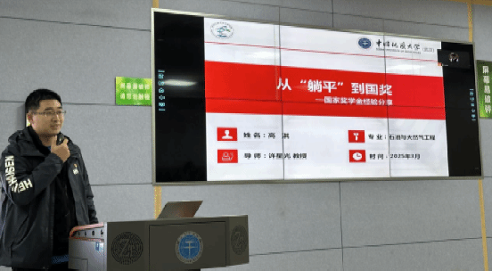 图 6 国奖获得者太阳成集团tyc234cc主页石油与天然气工程专业2022级博士生高淇同志分享经验
