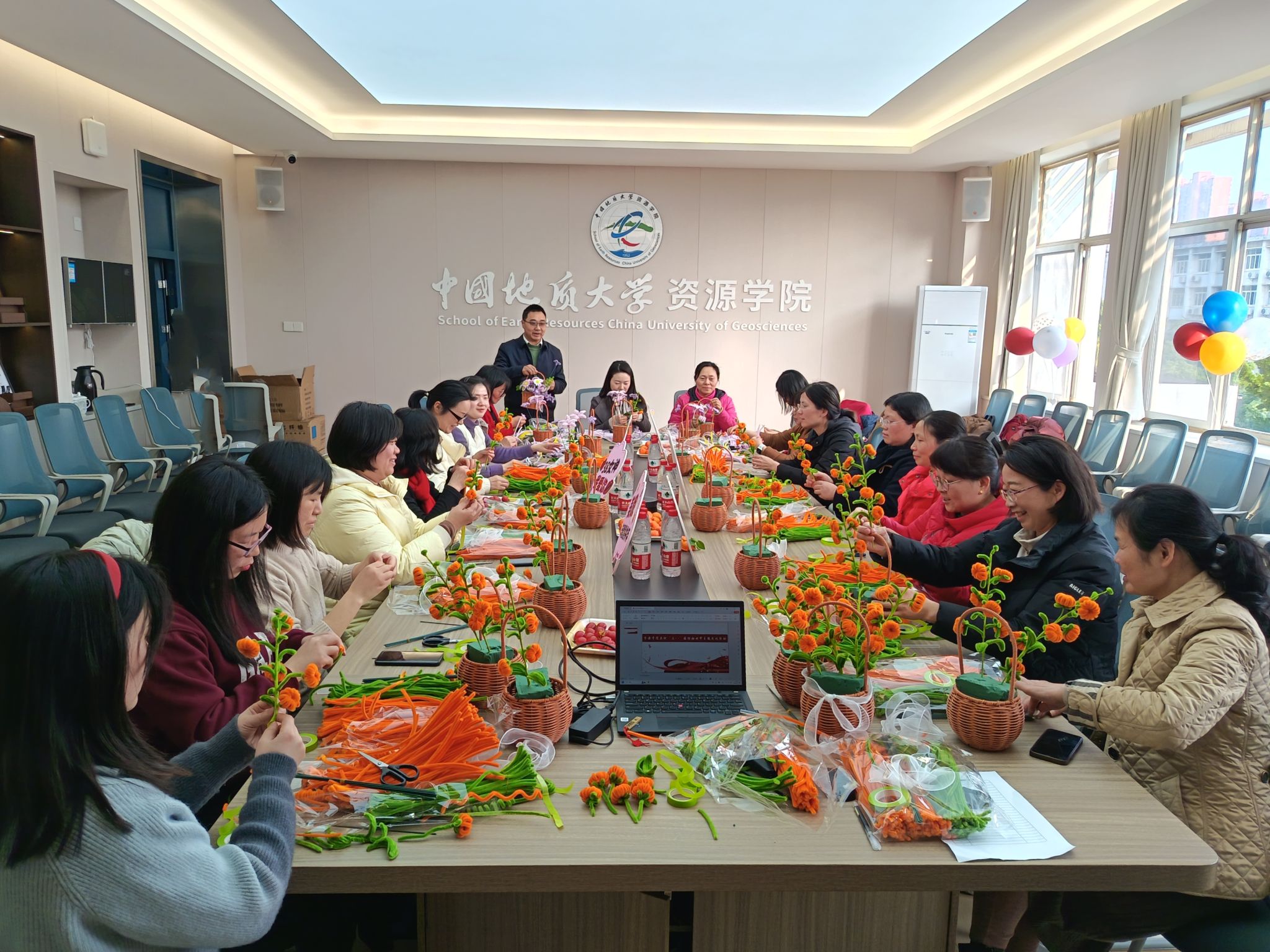为庆祝“三八”国际劳动妇女节,弘扬中华优秀传统文化,丰富女教职工精神文化生活,3月7日下午,公司工会以“巾帼撷芳承古艺 绒花巧手簪春色”为主题,组织全院女教职工开展非遗手工簪花花篮制作活动,通过传统技艺体验展现女性智慧之美,传递节日祝福。
