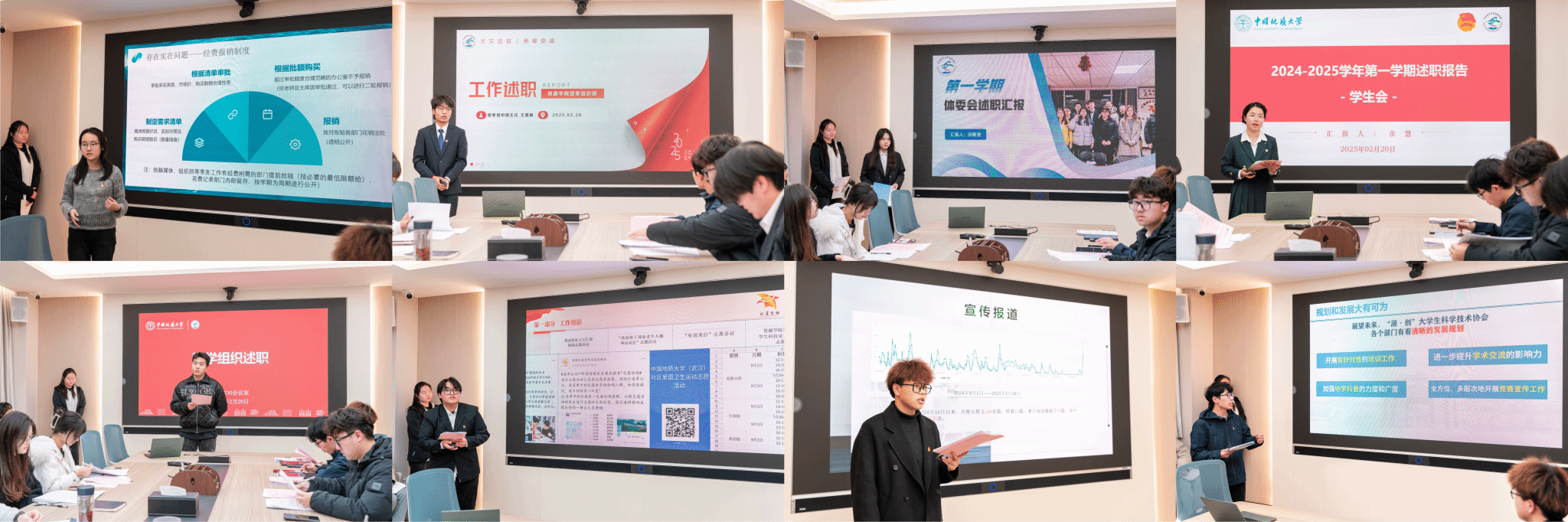 会议举行述职评优。团委直属部门、员工会、研究生会、“红星”青年志愿者协会、融媒体中心、“源创”老员工科学技术协会主要负责人及部门负责人从组织建设、工作进展、工作成效、现阶段存在的问题及改进方向全面介绍了过去一学期的工作情况和个人成长收获。
