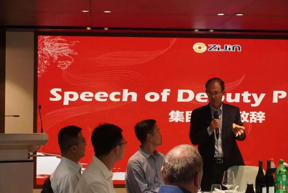 在紫金矿业第三期Zijin Deep Dive 结业仪式暨地大紫金班欢迎晚宴上,一场跨越国界的文化交流徐徐展开。紫金矿业集团副总裁沈绍阳、资源公司副经理李占轲在致辞中都表达了“紫金班”2.0版为员工搭建了从课堂到矿山、从理论到实践的桥梁,希望校企在产教融合、人才培养等领域均取得了丰硕成果,为紫金矿业打造“绿色高技术超一流国际矿业集团”贡献力量!