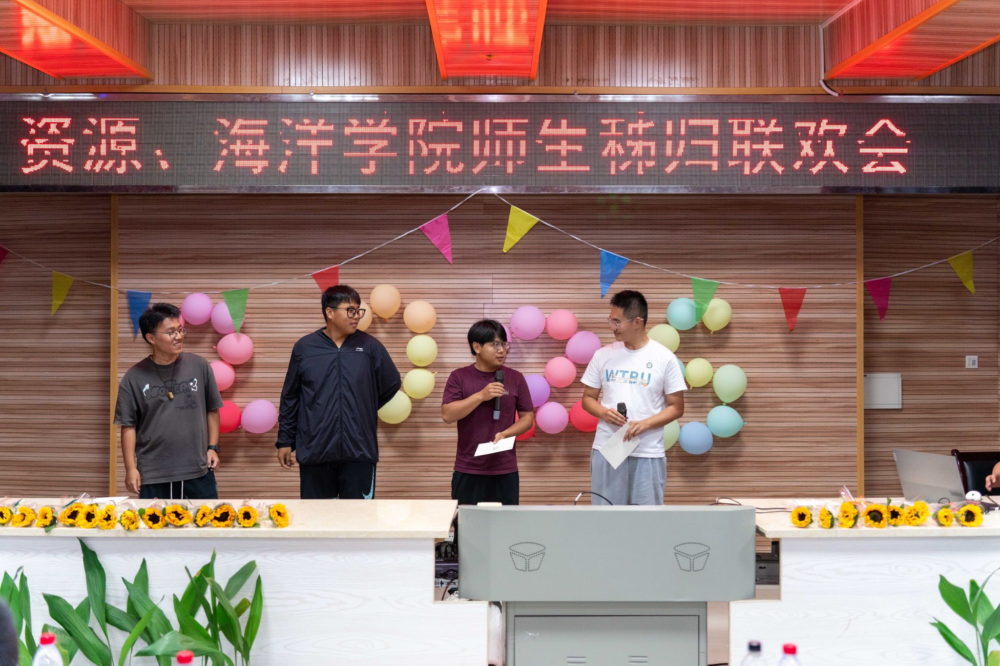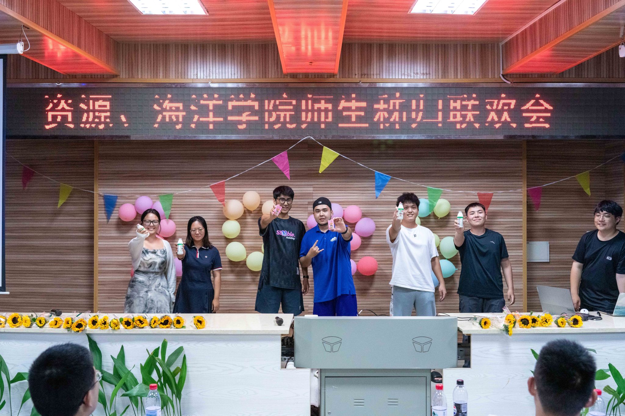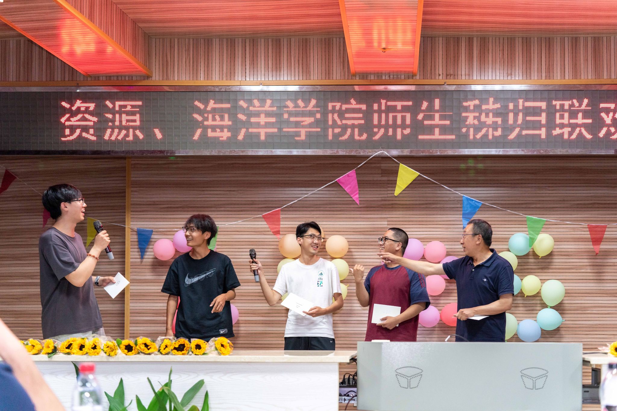 晚会的温情持续延展,主持人朗读员工手写的教师节祝福卡片:“于秭归实习,探寻地质奥秘,方知师恩如山……”字字真挚,句句动人。员工代表向两院教师献上向日葵花束,一声“教师节快乐”,凝聚了多少难以言表的感恩。
