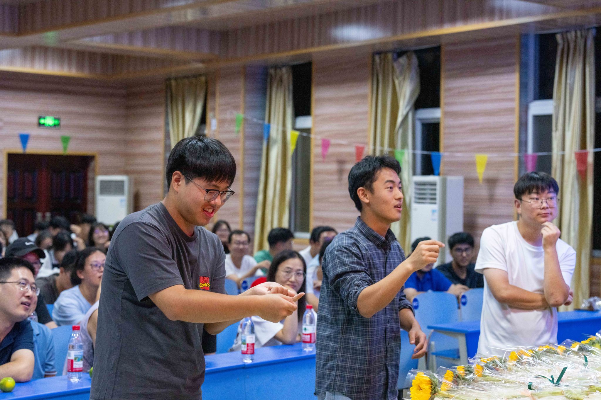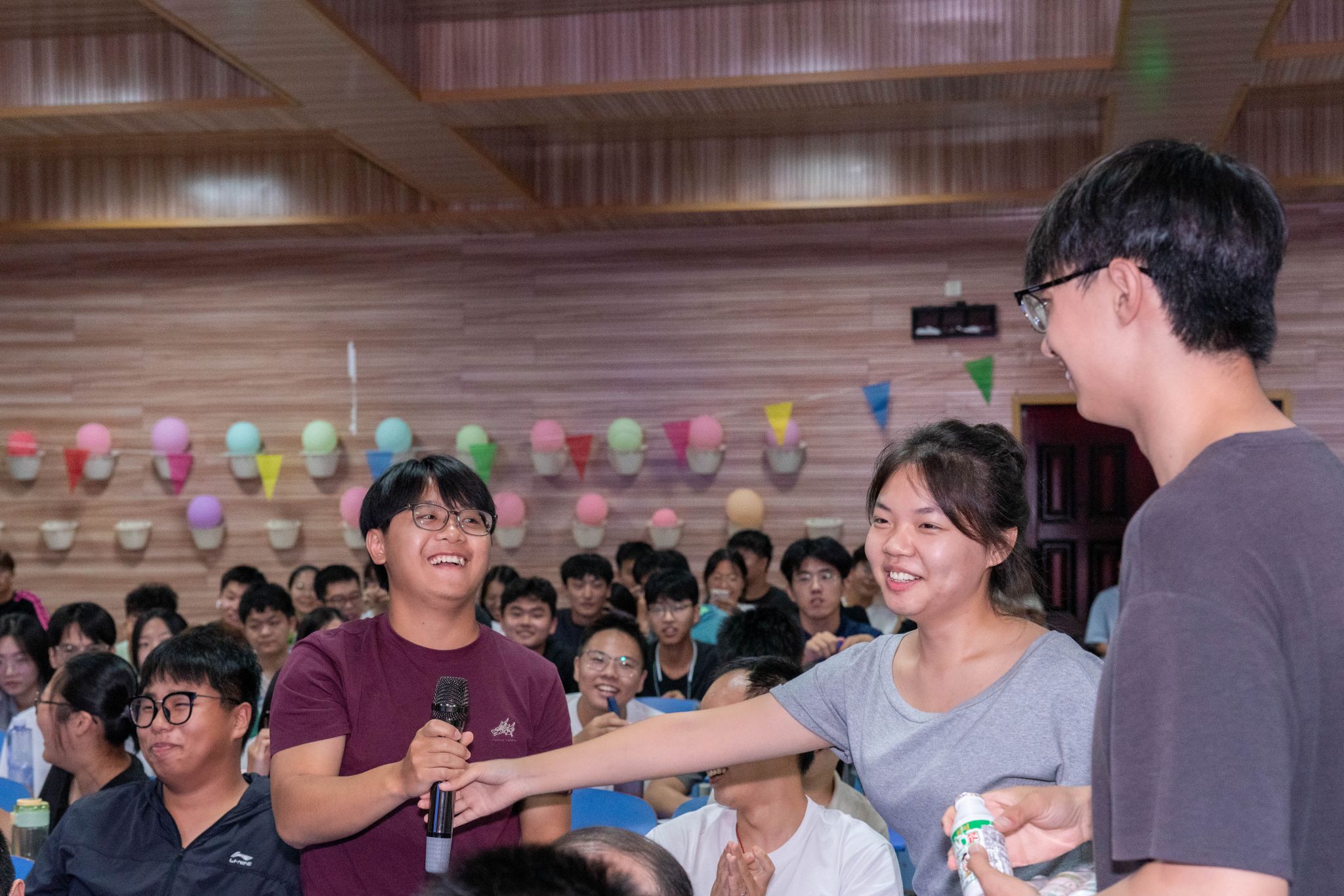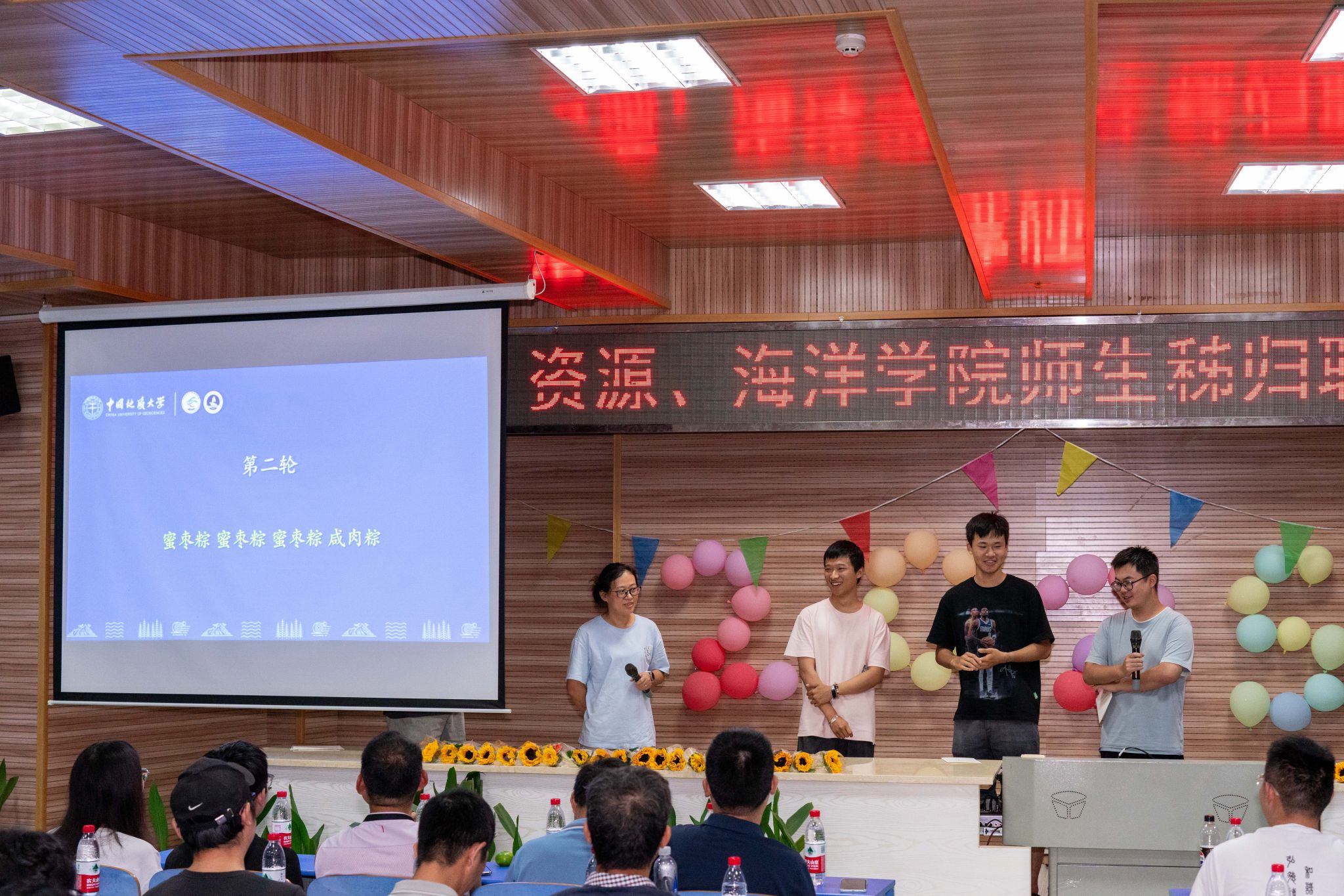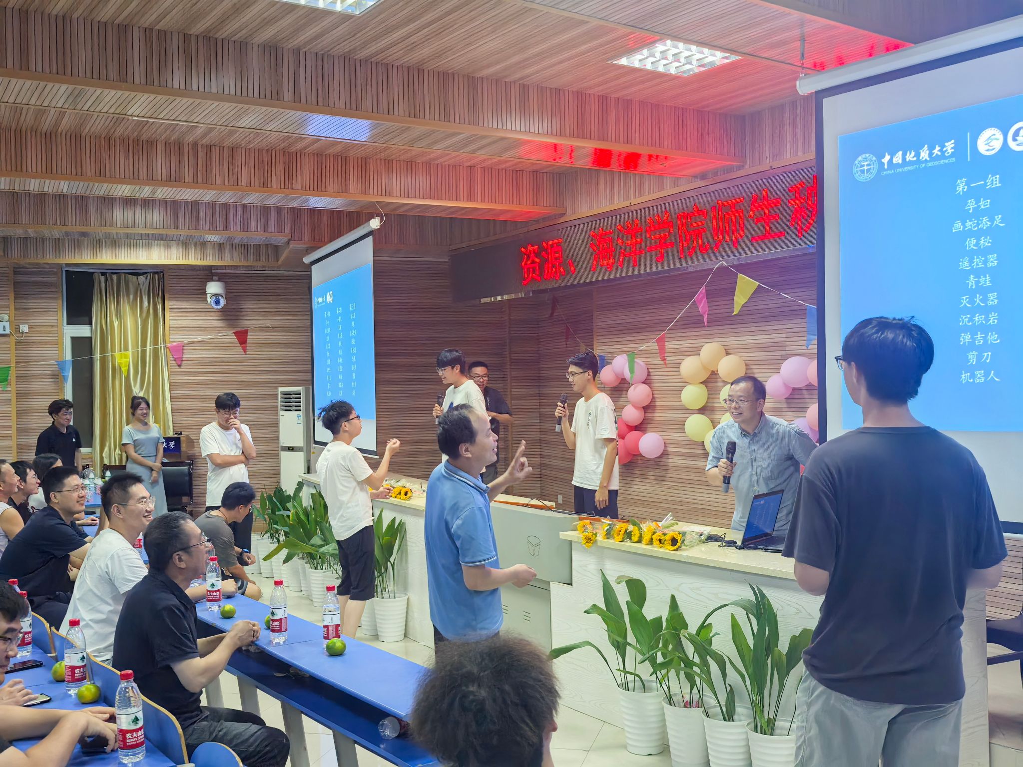 锅庄舞点燃全场热情后,首轮互动环节精彩上演。师生同玩“谁是卧底”,从“变质岩与沉积岩”到“蜜枣粽与咸肉粽”,从“热干面与炸酱面”到“麻辣烫与螺蛳粉”,既考验知识又比拼演技,默契互动笑点不断。