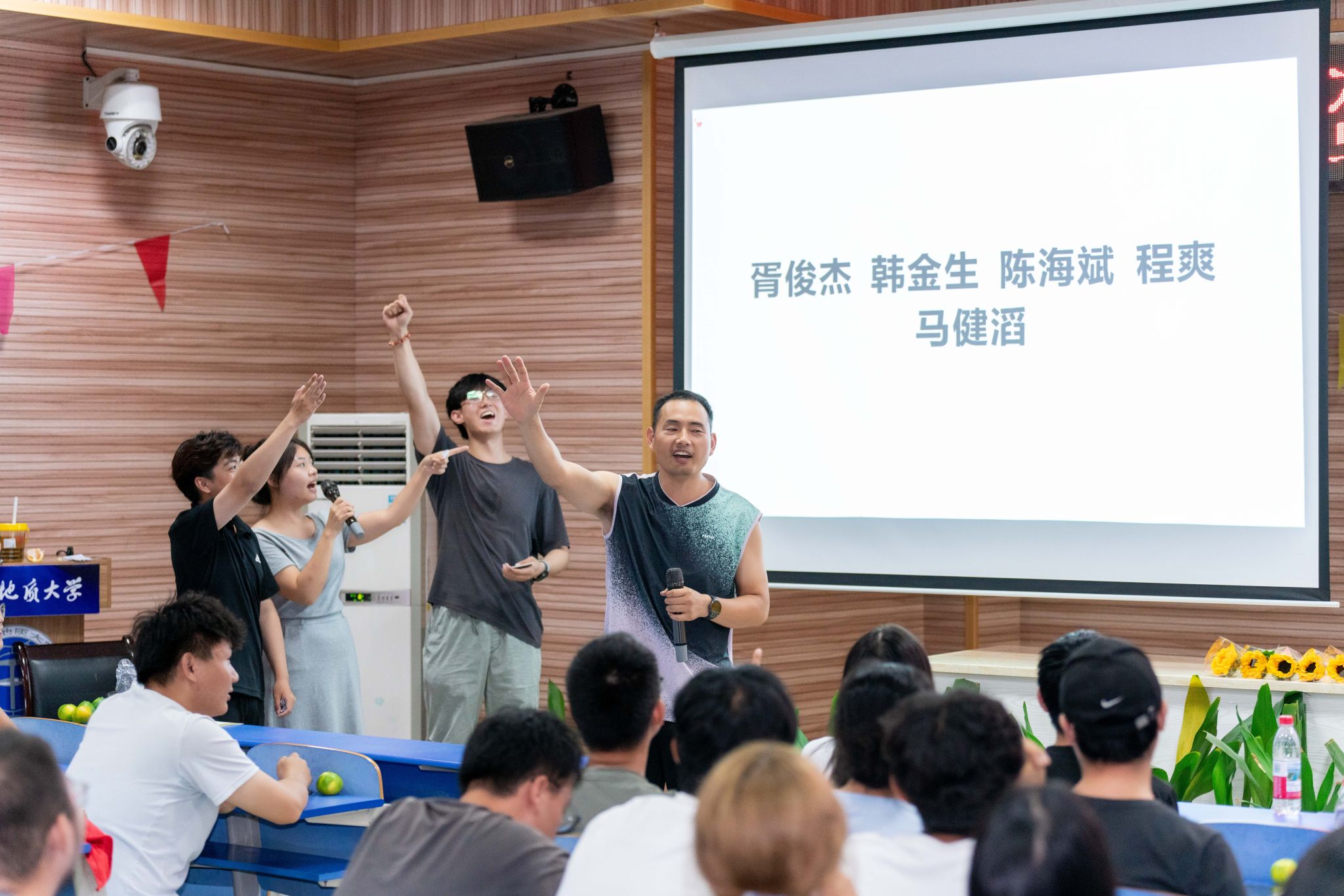 第二轮互动环节“听歌识曲”巧妙衔接,现场秒变“大型KTV”,从《海阔天空》到《我爱你中国》,一首首经典旋律引发热烈抢答,展现出师生之间的默契与活力。