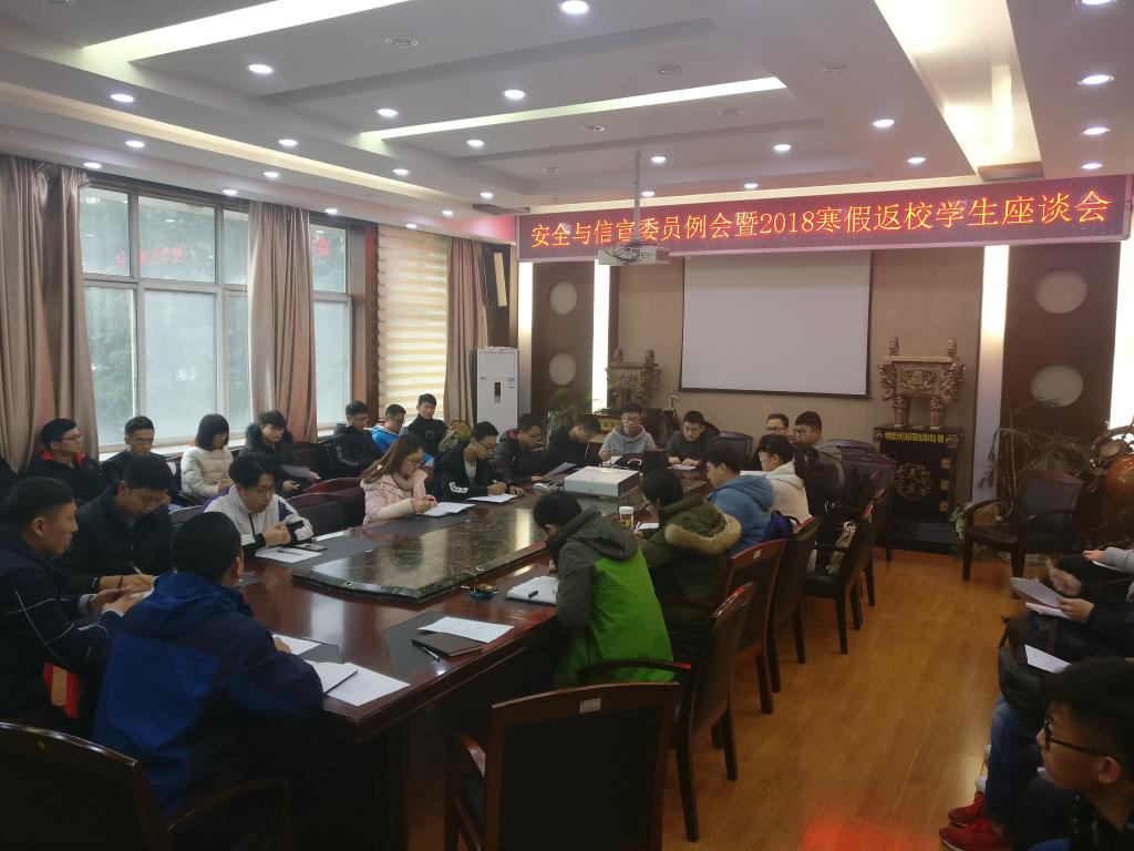 为及时了解和掌握新学期员工的思想动态和整体情况,3月8日晚,公司召开了安全信宣委员座谈会暨2018年寒假返校员工座谈会。公司党委副书记张建华、学工组全体辅导员及各班安全信宣委员参加了此次会议。会议由团委书记王向东支持。