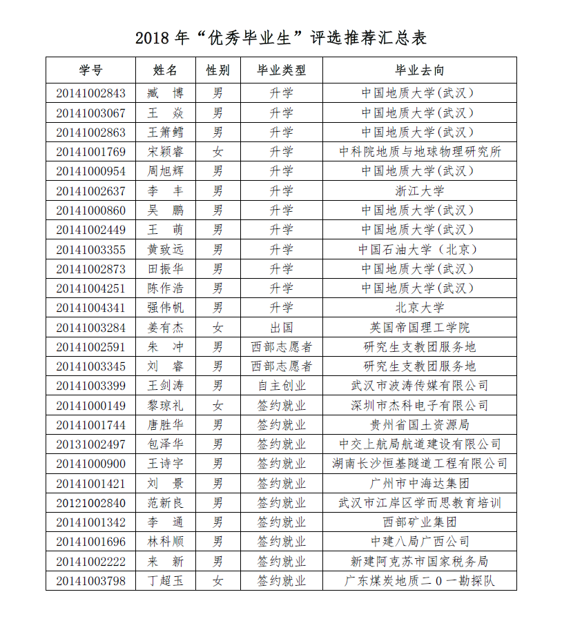 经员工个人申请和公司综合评审,现评选出020141、025141等2个班级为2018年先进毕业班,遴选出藏博等26名同学为2018年优秀毕业生,现将名单公示如下: