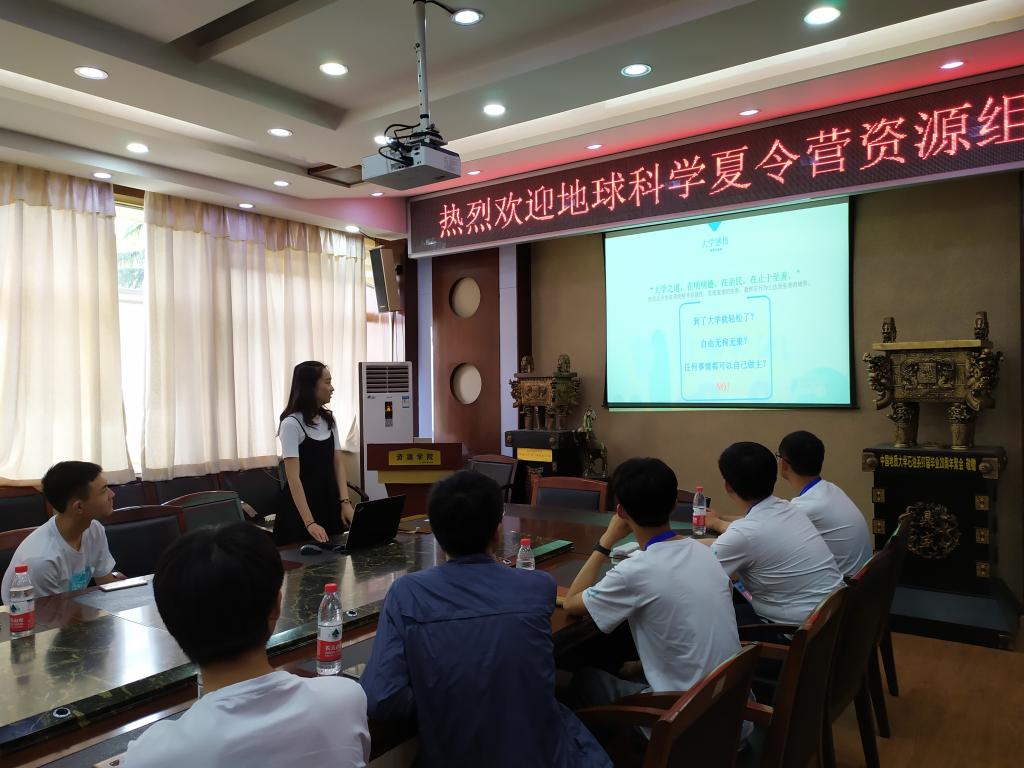 周江羽教授为营员做了专题报告,详细介绍了太阳成集团tyc234cc主页的历史、现状、发展、学科特色、课堂教学、野外实践、课外活动等,激发了营员们对矿产资源和能源资源的学习兴趣。