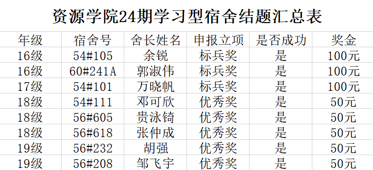 2.优秀奖:宿舍成员无挂科,大三大四年级平均绩点≥3.2,大一大二年级平均绩点≥2.9,人均奖励50元;