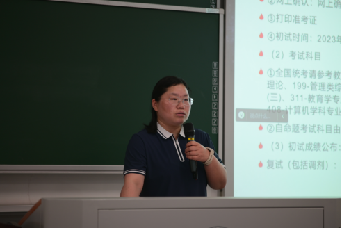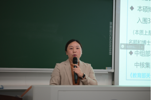 赵冬莉详细介绍了公司学位点建设和硕士研究生招录政策程序,并就近几年招录情况、专业报考选择、本硕博联合培养等作了介绍。