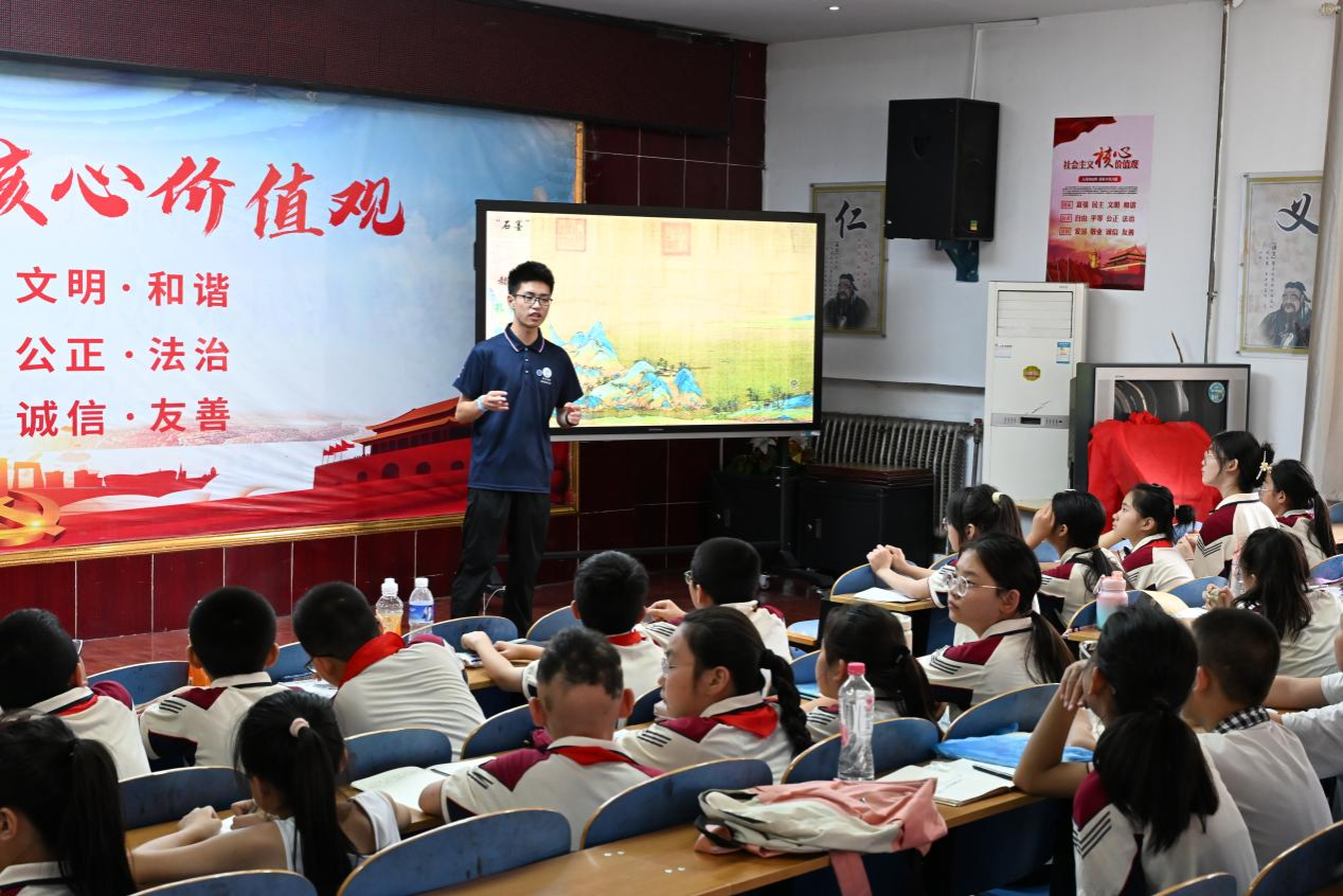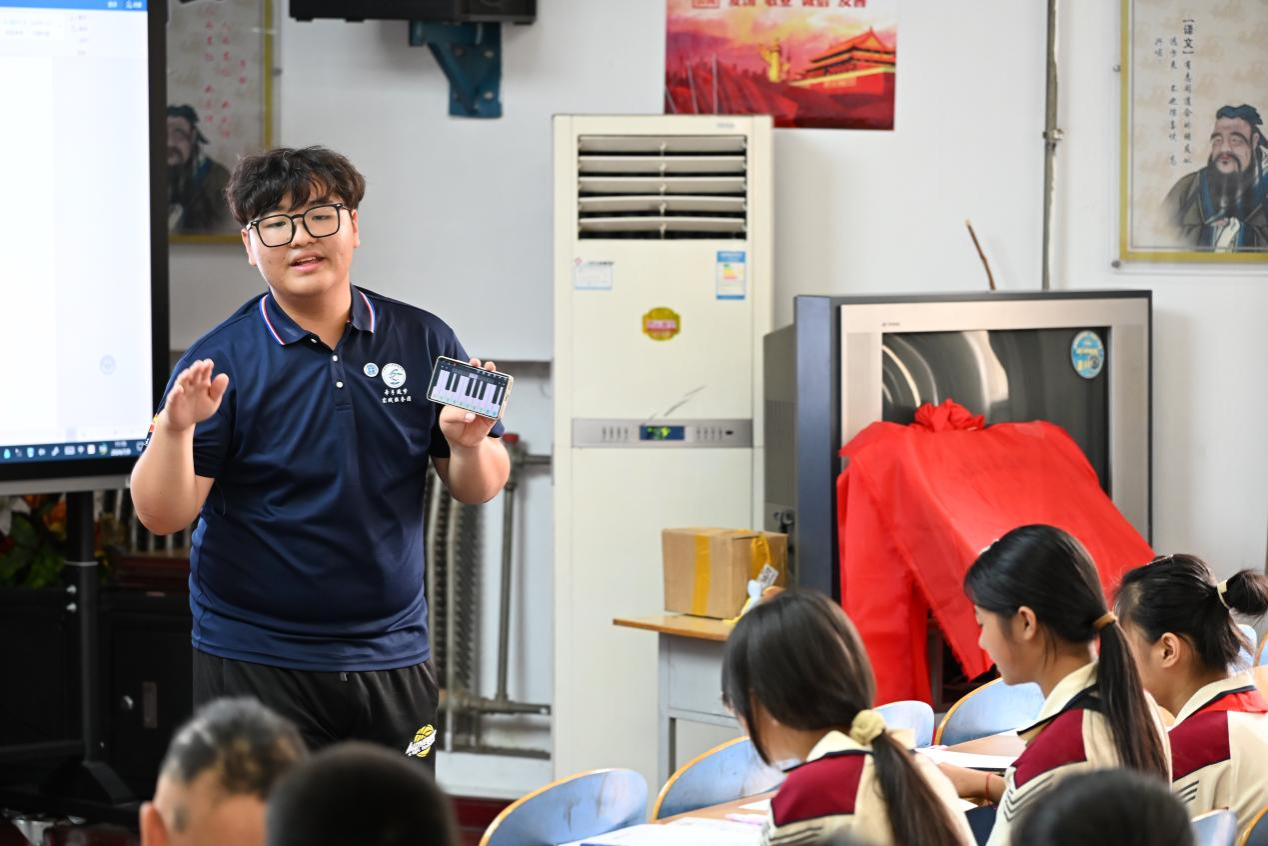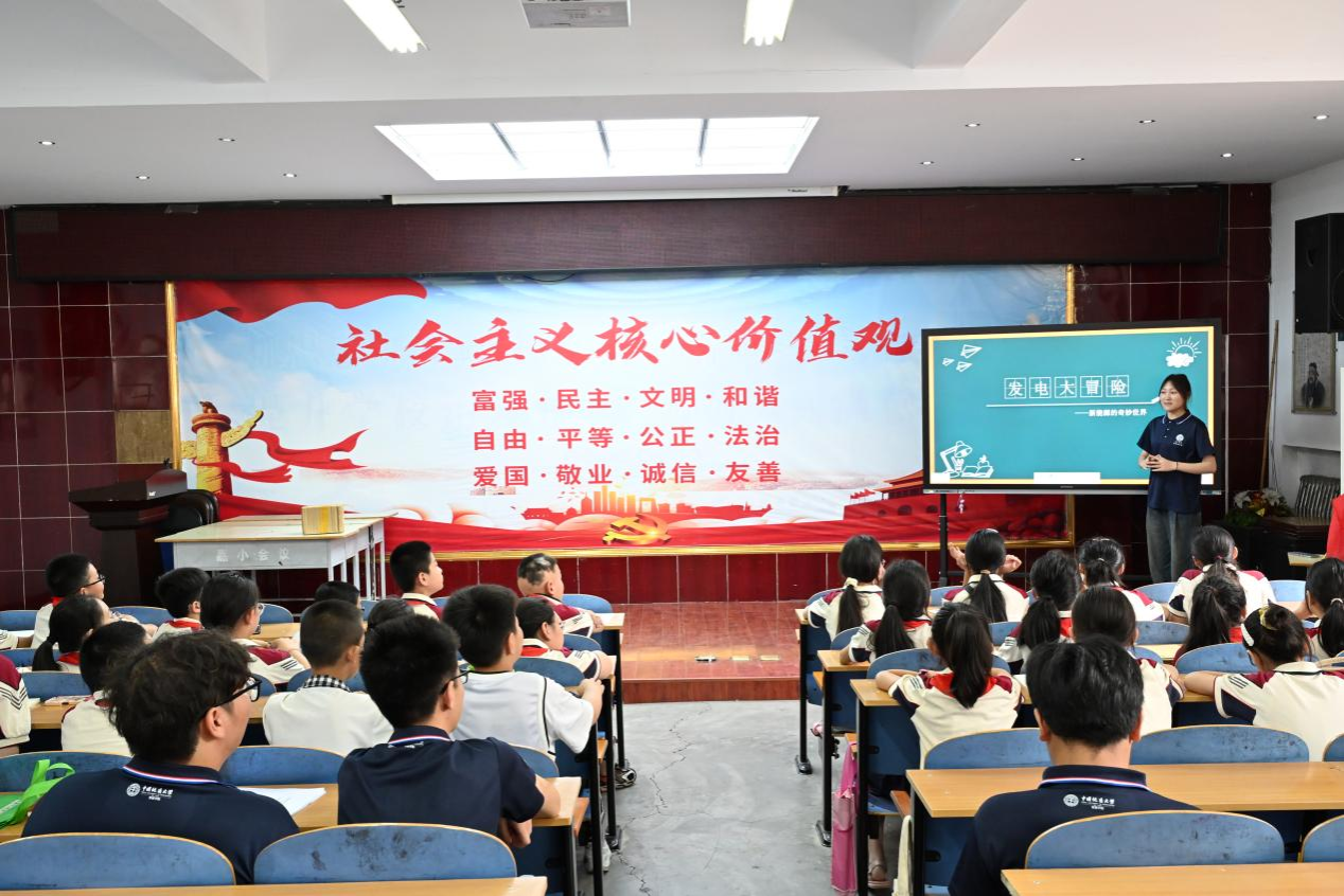 实践团成员李爱霞介绍课程情况并交流发言。她提到,实践团聚焦“益智实践”和“梦想启航”两大主题,多次集体备课研讨,精心打造11节“梦想课程”和9节“实践体验课程”,并在去年暑期支教的基础上用心雕琢,不断提升系列专项知识小讲堂教学质量。她表示,支教不仅是一次行动,更是一份责任和承诺,她将珍惜此次机会,怀着感恩,扛着责任,将梦想的种子播撒在孩子心中。