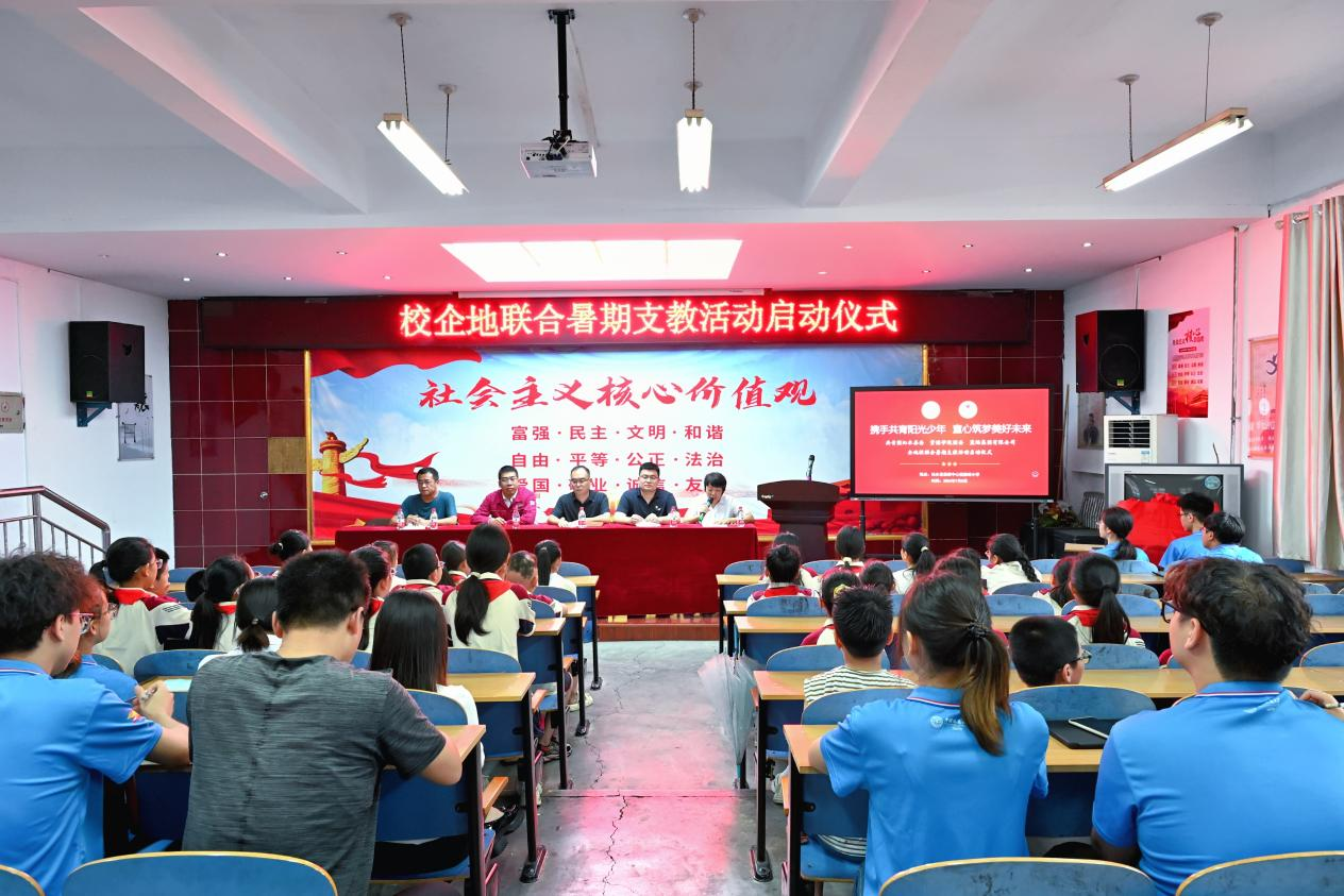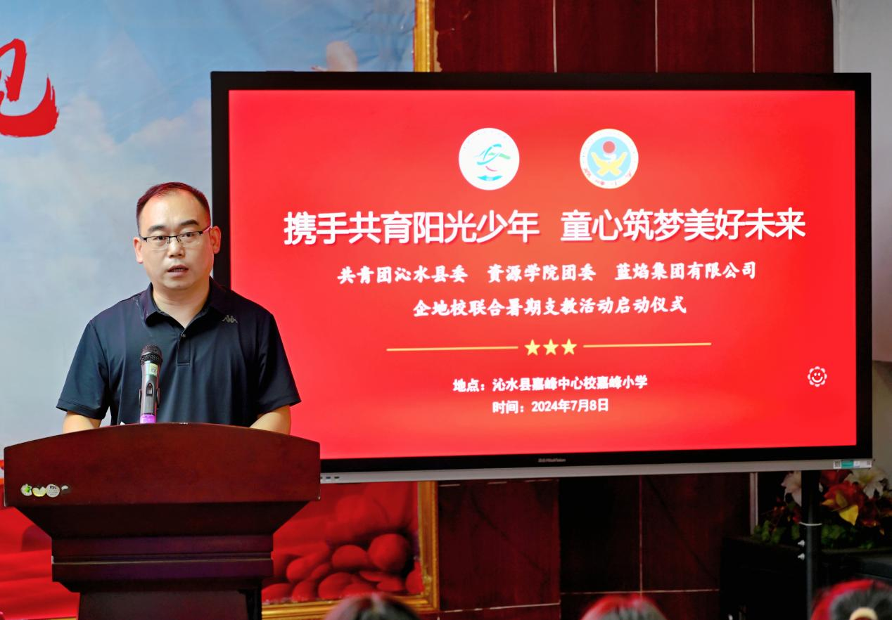 7月8日下午,太阳成集团tyc234cc主页团委和蓝焰集团有限公司、共青团沁水县委联合举办的“携手共育阳光少年 童心筑梦美好未来”暑期支教活动在沁水县嘉峰小学启动。共青团沁水县委书记王雄,公司团委副书记彭鑫,嘉峰镇嘉峰中心校董事长杨震宏,蓝焰公司党群工作部团委主办李昭出席活动,嘉峰小学教职工代表,“牵手筑梦”实践服务团成员,参与暑期支教的嘉峰小学员工参加活动。