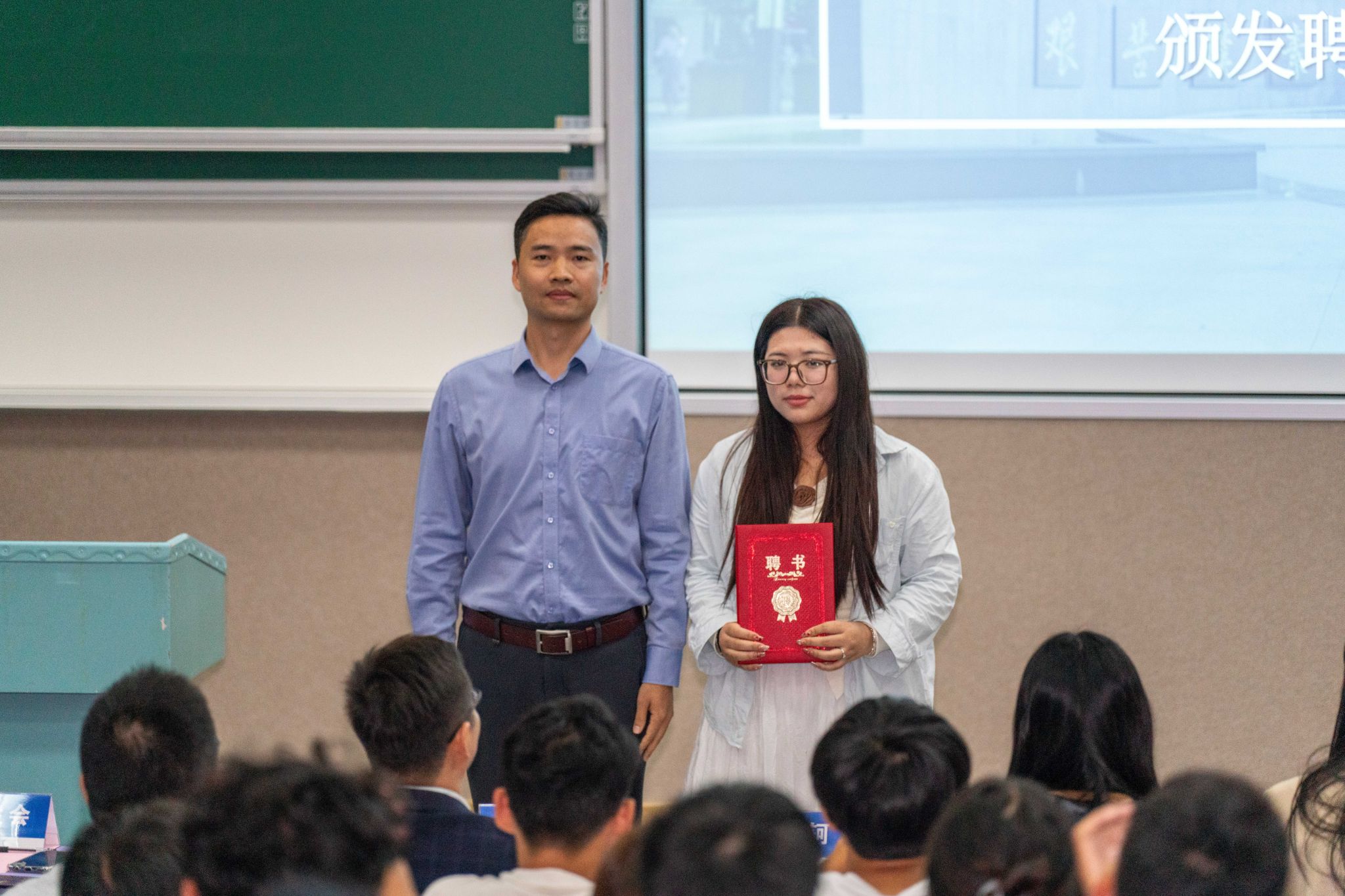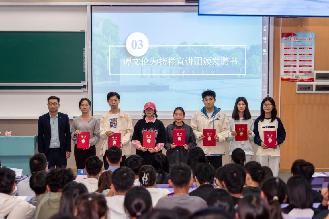 聘用仪式环节,党委副书记谭文伦为榜样宣讲团成员代表颁发聘书。榜样宣讲团来自公司近年来国家奖学金获得者、员工“双创”与行业学科竞赛获奖者、推免保研员工等组成,他们将深入班级分享自己的成长历程,发挥榜样示范引领作用。