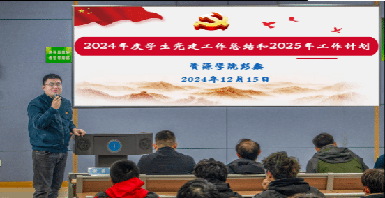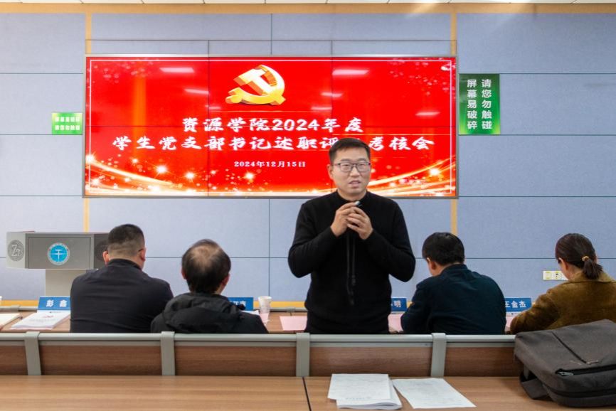 谭文伦总结讲话。他表示,本次述职会议是对公司年度党建工作的一次重要总结,也是一次学习交流。2024年,在公司党委的坚强领导下,各党支部能够紧紧围绕中心工作,认真履行党建工作主体责任,不断创新党建思路,强化工作举措,取得了一定成效,但还存在差距。他讲到,各员工党支部要按照公司党建“双创”工作部署,对照“七个有力”持续加强样板支部培育创建,一是强化党性教育,各党支部要充分发挥公司党建指导员和党支部战斗堡垒作用,创新理论学习方式,深化学习成果转化,增强理论素养和政治自觉性,引导党员们树立正确的价值观和良好的行为准则,做到学思践悟、知行合一;二是要强化纪律意识,员工党员要以身作则,严于律己,员工党支部要认真落实全面从严治党要求,提高党员队伍建设质量;三是强化结对共建,持续加强教工党支部与员工党支部结对共建,巩固“党-团-班、师-研-本”工作格局,以党的建设促进导学团队和班级建设;四是强化品牌意识,深入结合学科特色与专业优势,总结经验,挖掘亮点,明确思路,创建培育更多具有资源特色的样板党支部,促进支部建设与员工成长同向同行、互融互通,为服务能源强国的伟大事业注入坚定的红色动能。