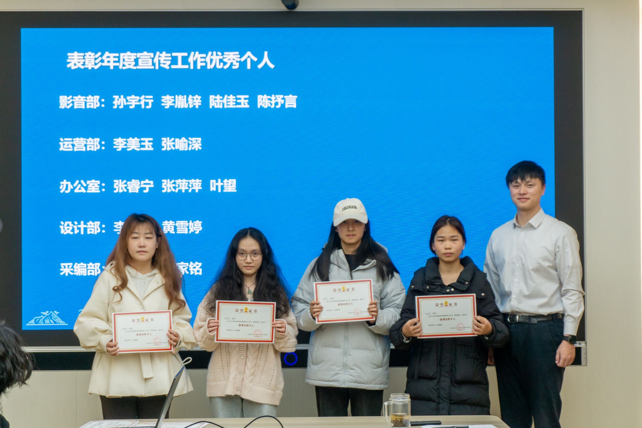 影音部、运营部、办公室、设计部和采编部围绕部门建设、技能培训、学年工作推进情况等内容对宣传工作进行展示汇报。