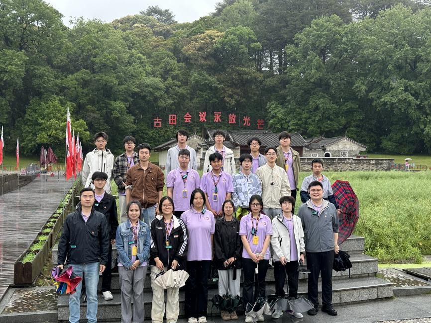 在龙岩市上杭县古田镇——古田会议旧址群,师生们一行参访了古田会议会址、毛泽东纪念园,以“沉浸式、场景化”的主题教育形式,集中学习了“思想建党、政治建军”的核心精神,感悟了中国共产党人筚路蓝缕、矢志奋斗的初心使命。