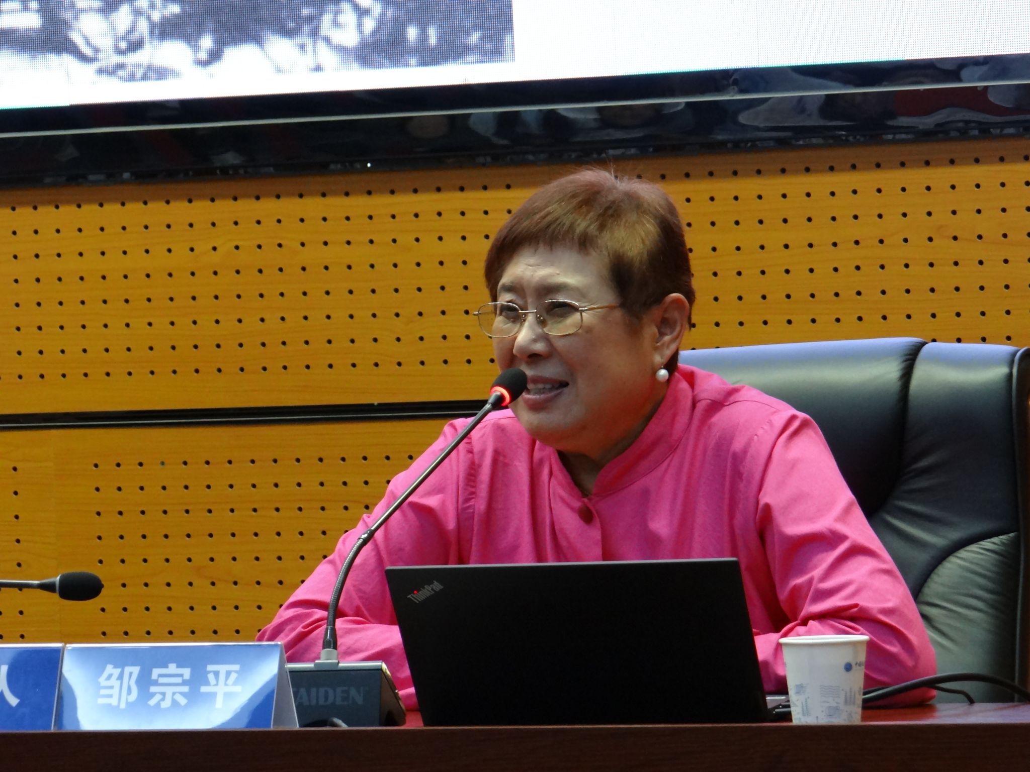 开幕式后,举行了“李四光精神”主题报告会,由中国科学家精神宣讲团成员、李四光纪念馆高级顾问、李四光先生外孙女邹宗平女士主讲,报告主题为《石迹耿千秋—李四光的故事》。