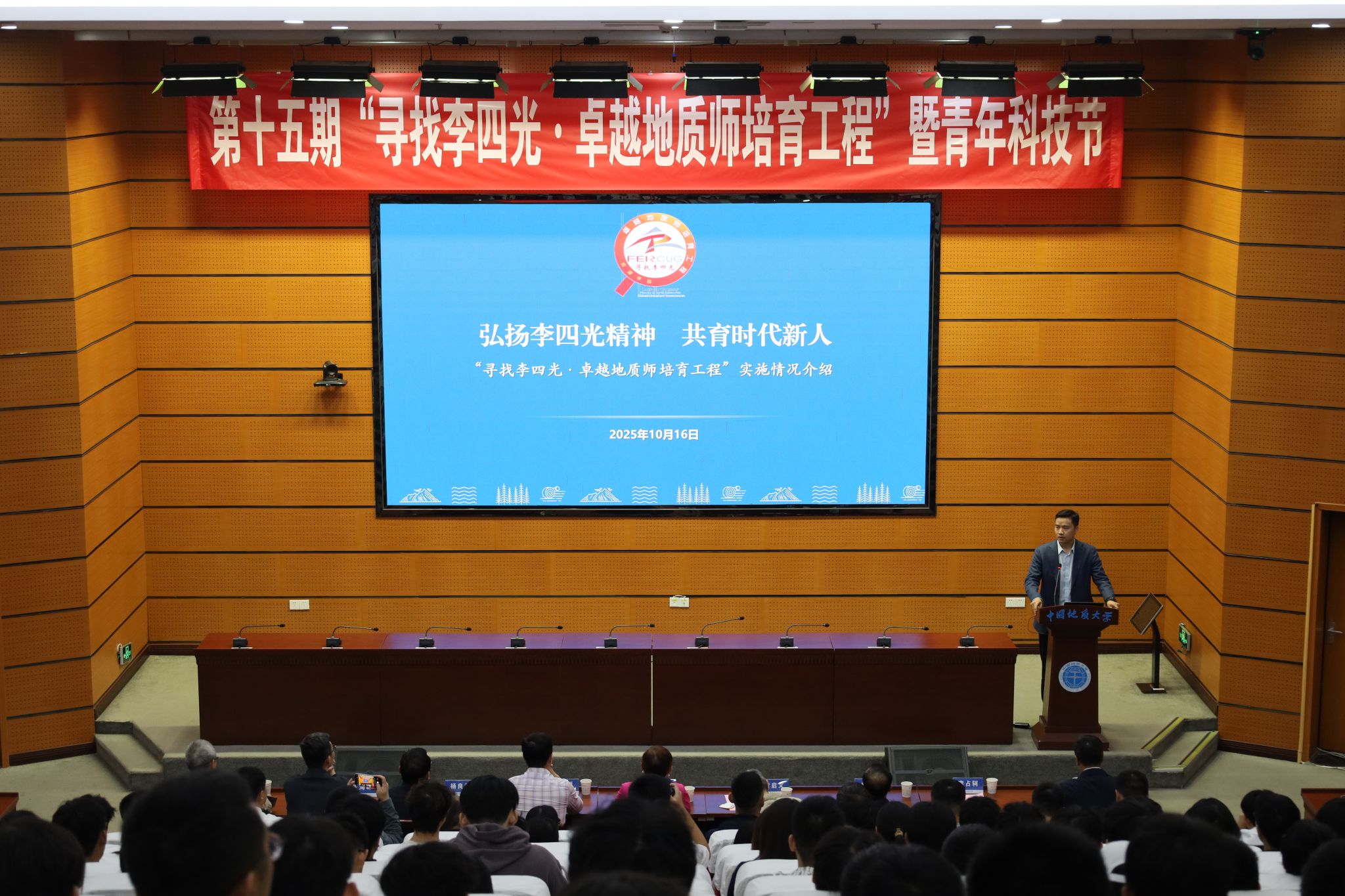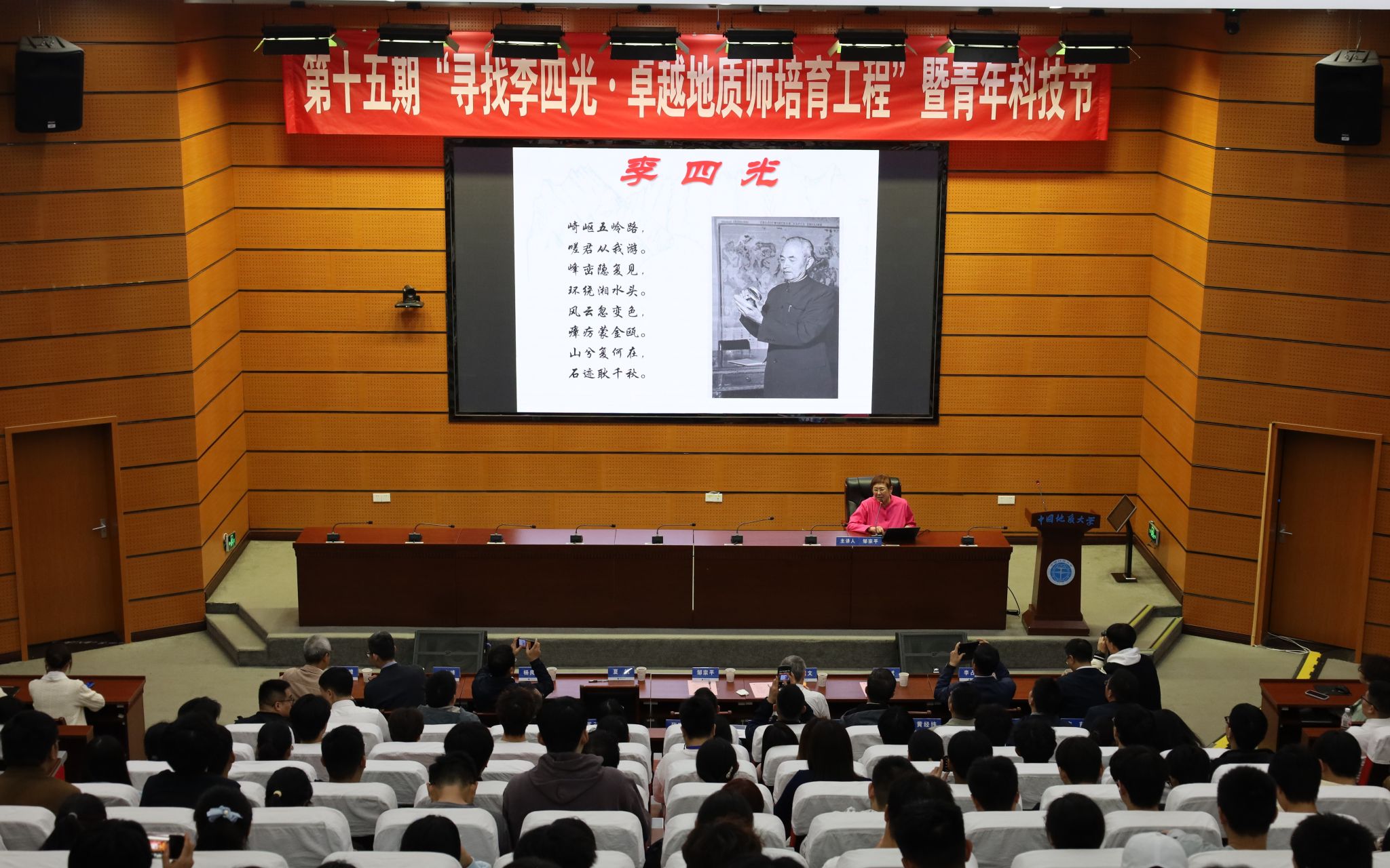 (通讯员 陈嘉昕 张萍萍 刘睿 陈宇 摄影 张少龙 陈抒言 常宇涵)10月16日,公司在南望山校区东教楼A0113教室举行第十五期“寻找李四光·卓越地质师培育工程”开幕式暨“李四光精神”报告会。中国科学家精神宣讲团成员、李四光纪念馆高级顾问、李四光先生外孙女邹宗平女士,李四光纪念馆黄启文先生,湖北省李四光研究会副秘书长、湖北省地质科学研究院副经理杨良哲,黄冈市李四光纪念馆办公室主任夏炜,公司副董事长夏帆,图书档案与文博部部长帅斌,党委学工部副部长王海峰、校史馆副馆长苏玉微,湖北名师徐思煌教授,资源公司党委书记汪再奇、经理李占轲,十五期参赛团队及师生代表出席活动。