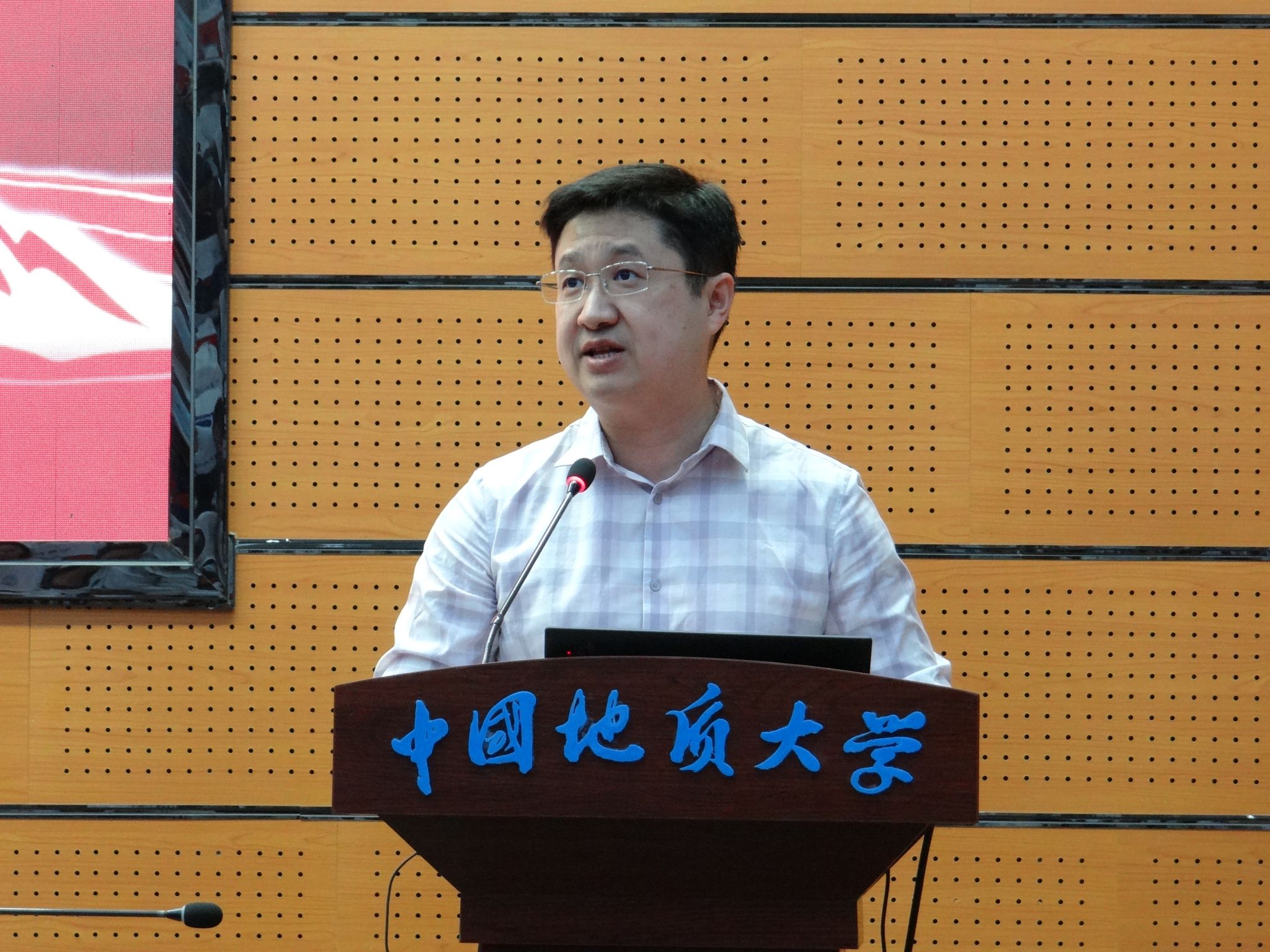 教师代表、湖北名师徐思煌教授发言。他回忆了自己受李四光精神感召下选择地质学专业,并在教育工作中践行科学家精神的经历。他强调野外实践与科研创新相结合对培养拔尖创新人才的关键作用。他鼓励同学们在夯实学业基础上,积极参加创新创业赛事,不断磨练创新思维,成长成才。