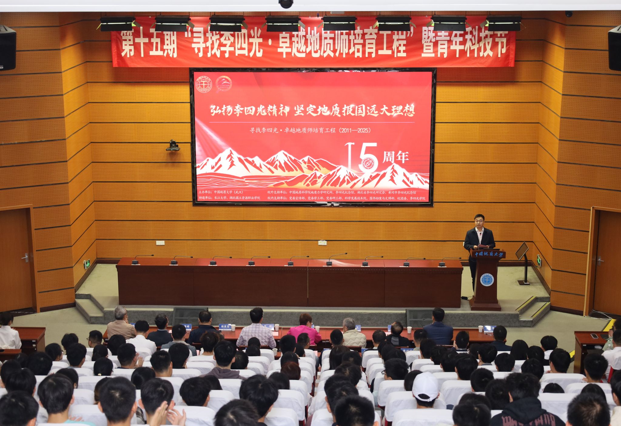 副董事长夏帆致辞。他回顾了李四光先生为新中国地质事业作出的重要贡献。他谈到,弘扬和传承李四光精神,是公司文化育人、实践育人的重要使命。公司连续15年举办“寻找李四光·卓越地质师培育工程”,成为集党建思政、团队建设、实践育人、文化传播等为一体的综合实践育人品牌。他寄语青年学子:心怀“国之大者”,做服务国家战略的“先行者”;“向深而进”,做驱动“新质生产力”的“创新者”;勇担“时代使命”,做挺膺担当的“实干家”。