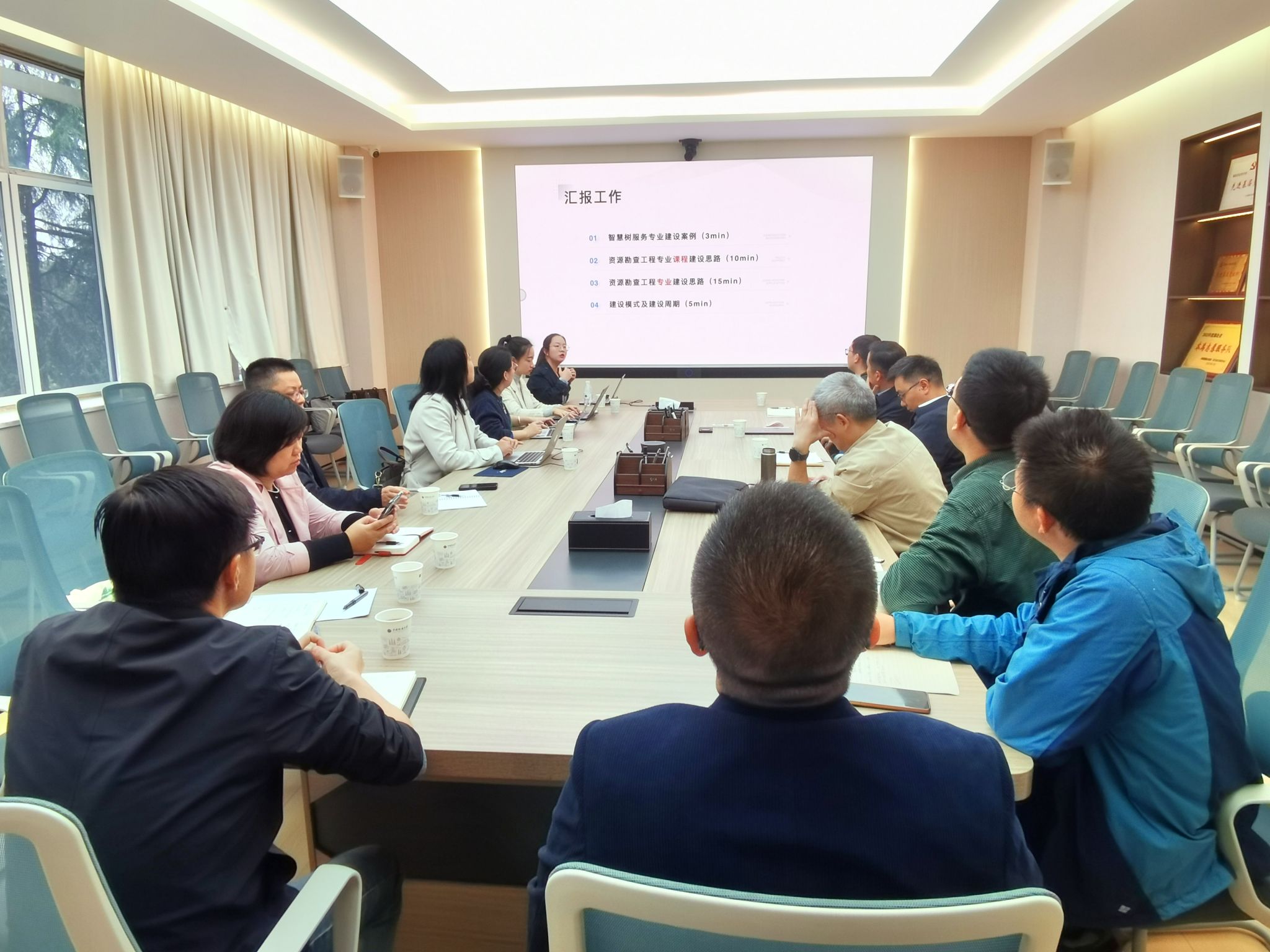 智慧树网的项目对接团队首先介绍了公司背景及服务专业建设的案例,然后重点讲解了资源勘查工程专业数智化课程建设思路和专业建设思路,已配备建设团队和课程建设顾问。为了对接工程教育认证,该项目将配套建设专业和课程达成度分析模块。