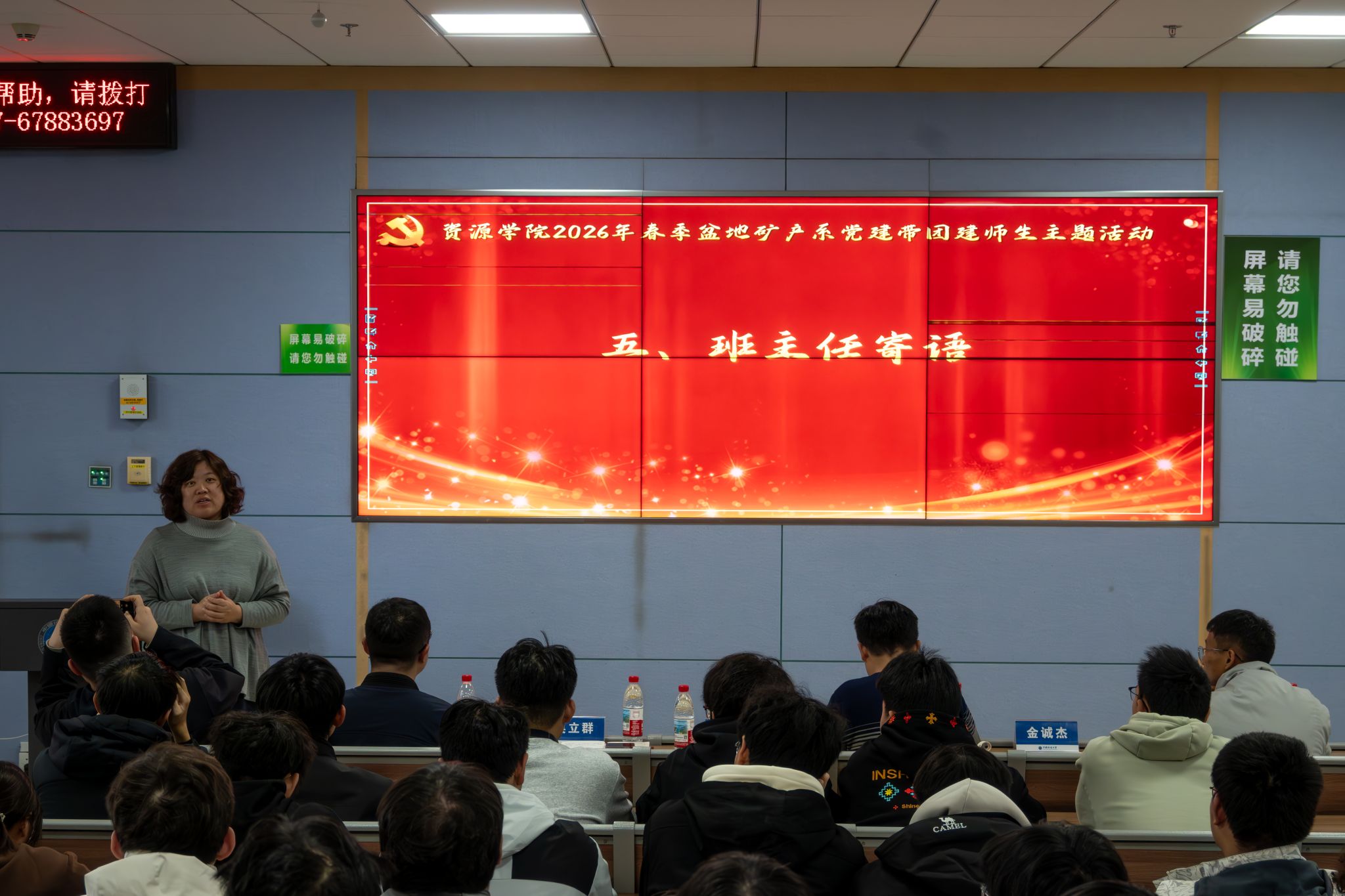 系党支部书记王小明老师在总结讲话中向青年学子提出三点殷切期望:一是把志向牢记心上,坚定理想信念,筑牢精神之基,始终保持对党忠诚、对事业热爱的政治本色;二是把本领握在手上,练就过硬能力,勇担时代重任,努力成长为可堪大用、能担重任的栋梁之材;三是把行动落在脚下,勇于担当作为,用奋斗书写找矿报国的青春答卷,让青春在为国家能源资源安全奋斗的征程中绽放光彩。