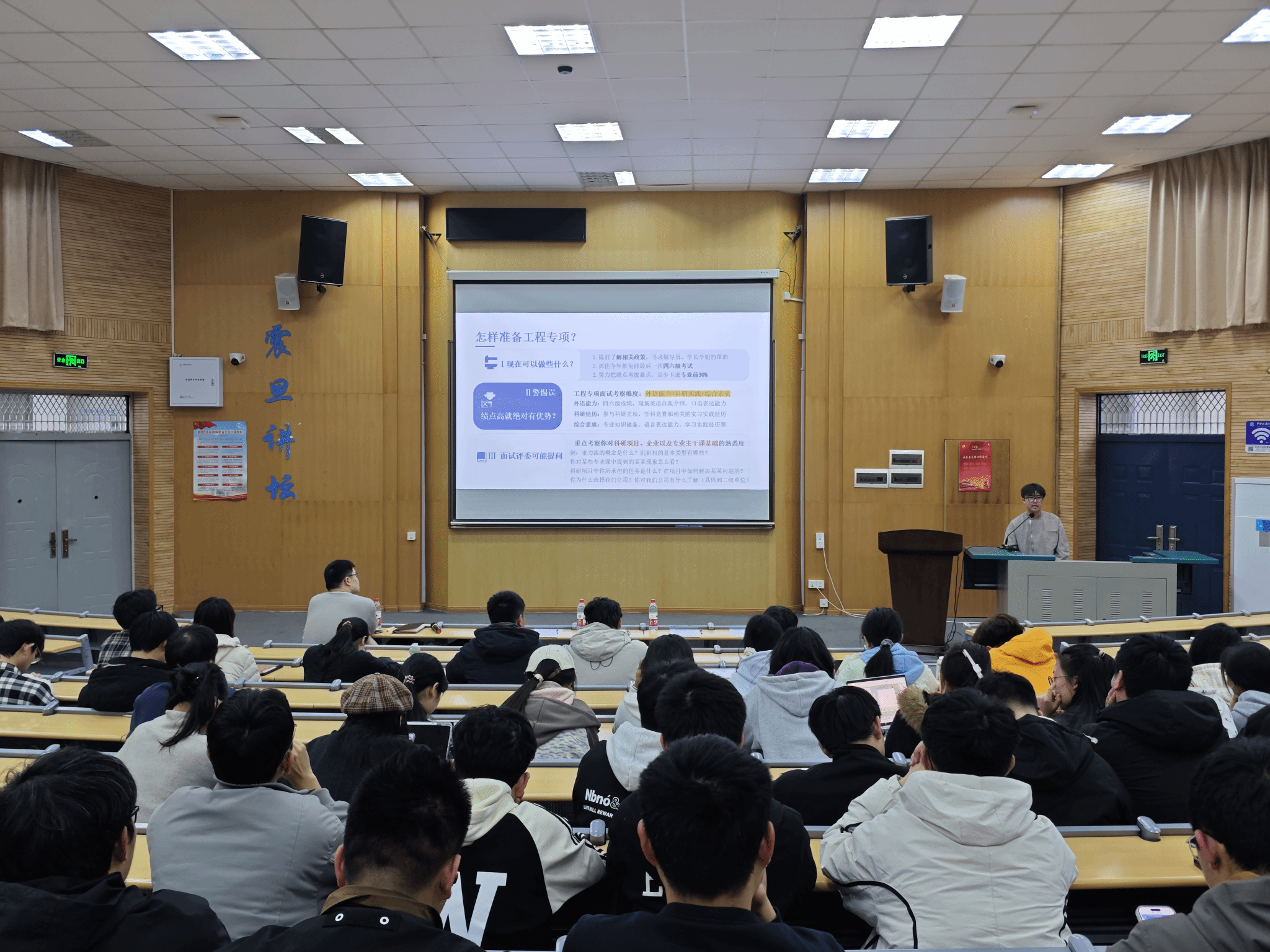 2022级中国海油工程专项入选员工唐果作推免政策宣讲及工程专项经验分享。他重点解读了推免政策的最新动态,详细介绍了推免的整体流程及各类推免类型,并结合自身经历深入讲解了工程专项联培企业的具体情况与申请要求。他从实际出发,就如何规划准备工程专项计划提供了诸多建议,为有意向参与工程专项的同学提供了宝贵的经验参考与方向指引。