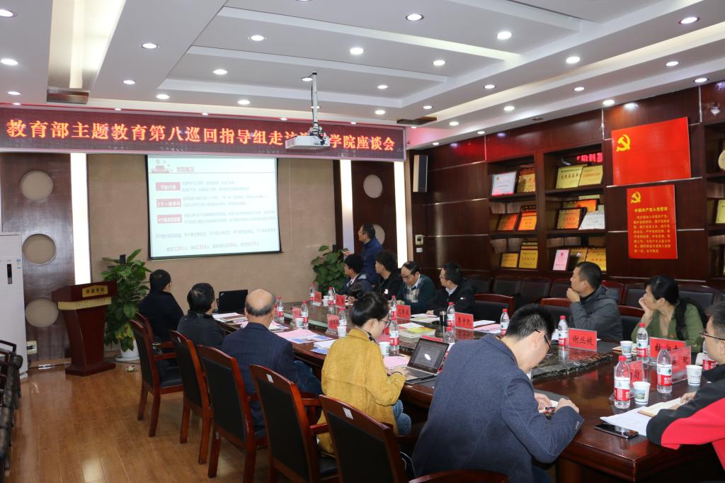 11月21日,教育部主题教育第八巡回指导组组长黄健柏,指导组成员刘尧、储钰琦,公司党委副书记唐辉明,组织部副部长梁本哲、冷再心一行来院调研主题教育工作。公司党委书记李宇凯、党委副书记张建华、副经理沈传波、各教工党支部书记、员工党员代表参加座谈。
