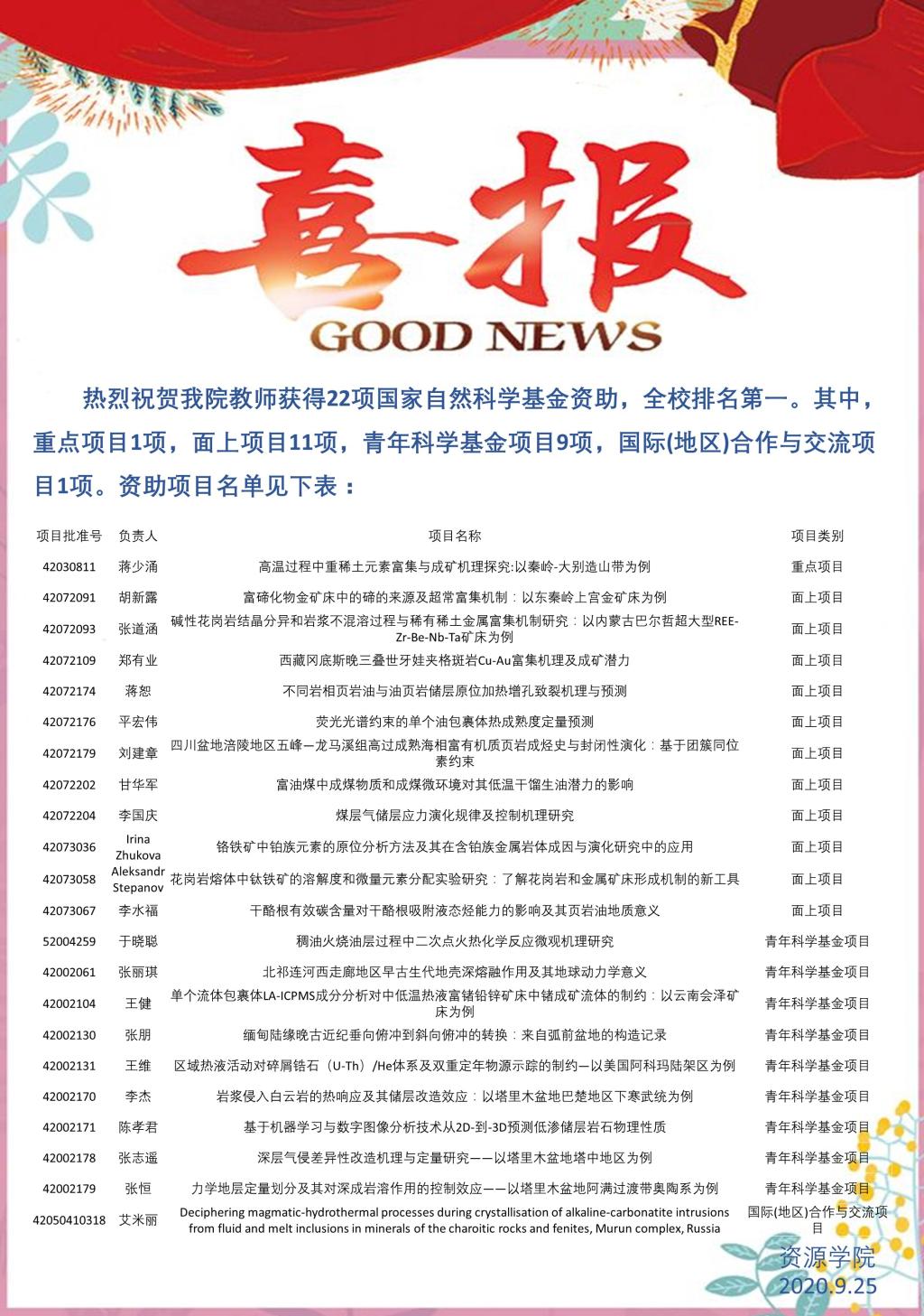 热烈祝贺公司教师获得22项国家自然科学基金资助,全校排名第一