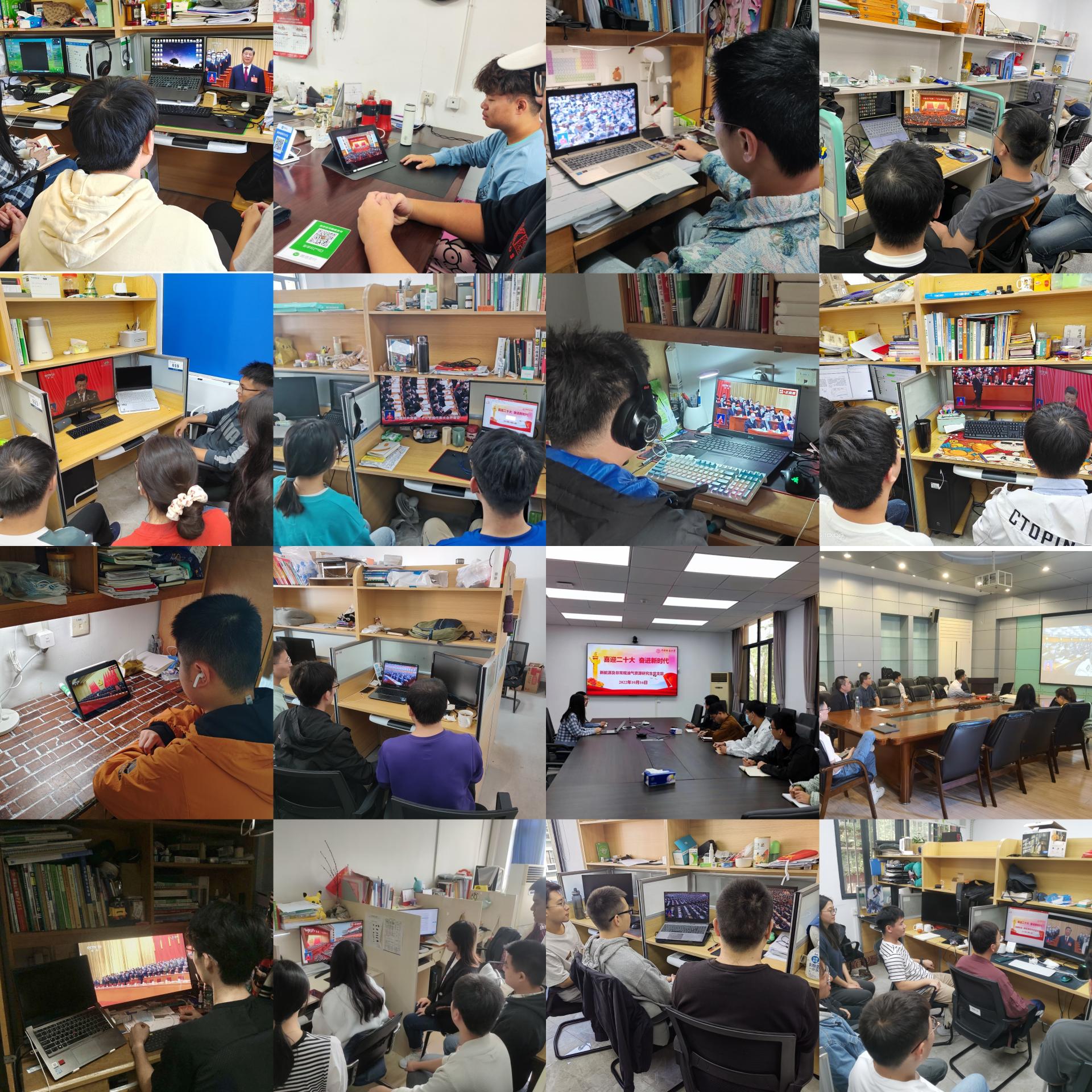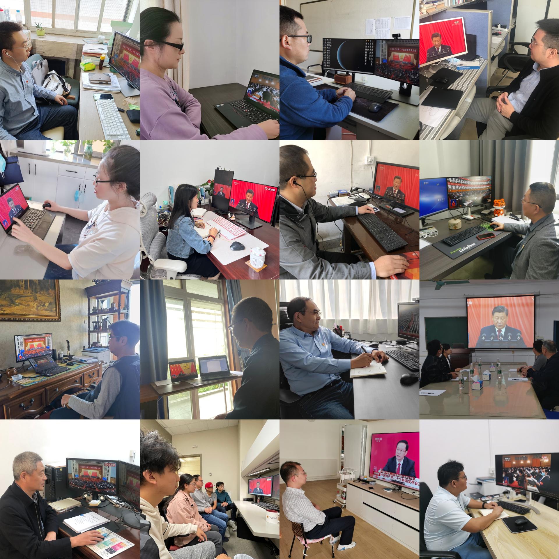 根据公司党委统一安排,在201会议室、教三楼208和56#青年之家设立集中收听收看会场,组织公司党政领导班子,各三级单位党政班子成员,员工党支部书记,员工团支部书记,党团学员工组织成员,教师和员工代表集中收听收看大会盛况;同时,各师生党支部、员工团支部,依托系所属会议室、实验室、工作间、宿舍等组织全体师生小范围集中或自行收听收看大会。
