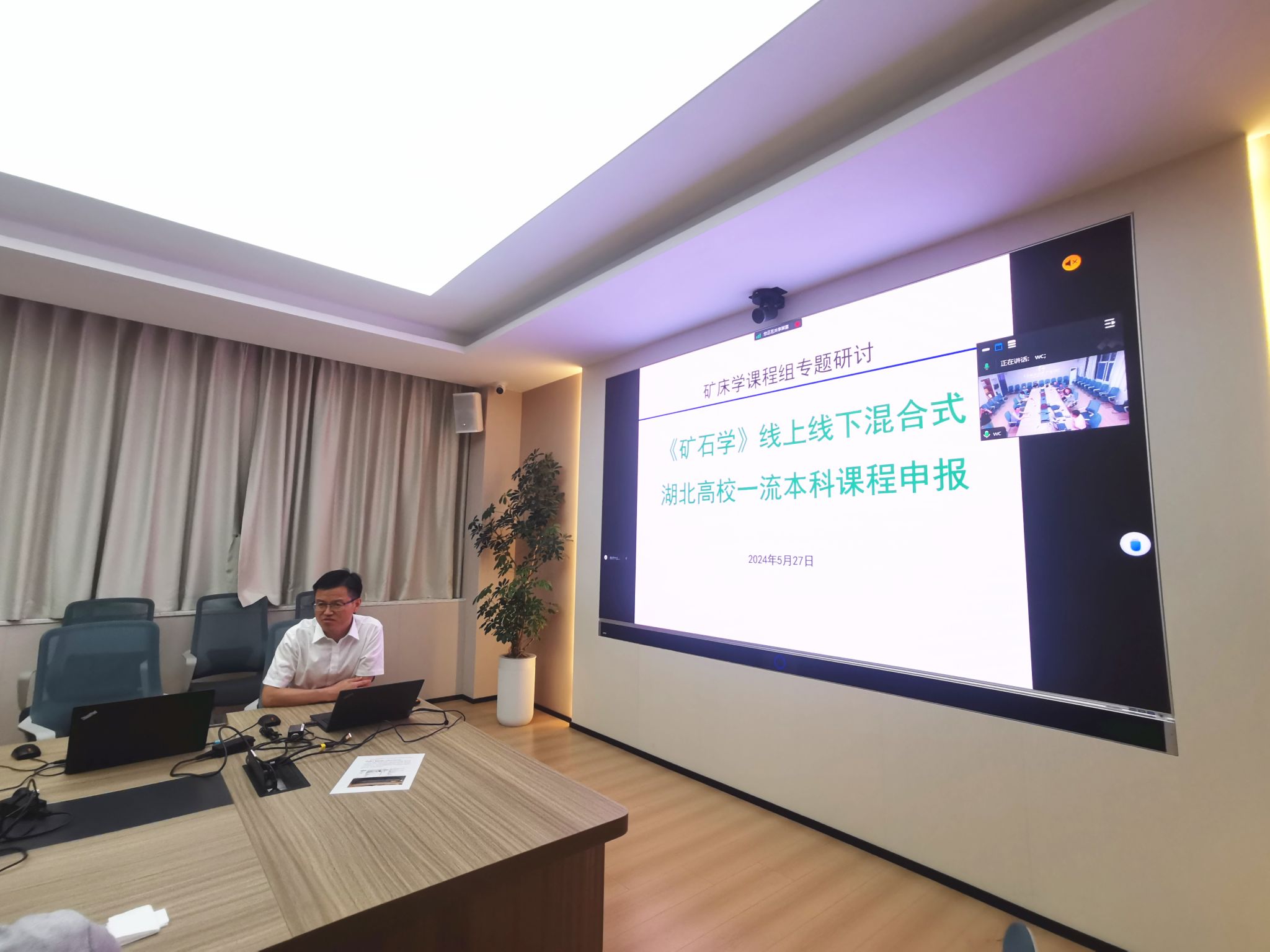 张金阳负责的《矿石学》课程今年拟申报湖北高校一流本科课程,他按照申报书内容详细展示了《矿石学》课程的建设基础和申报思路。毛宁波逐条梳理了《矿石学》一流本科课程申报书内容的各项细节及注意事项,并给出了针对性的修改意见。