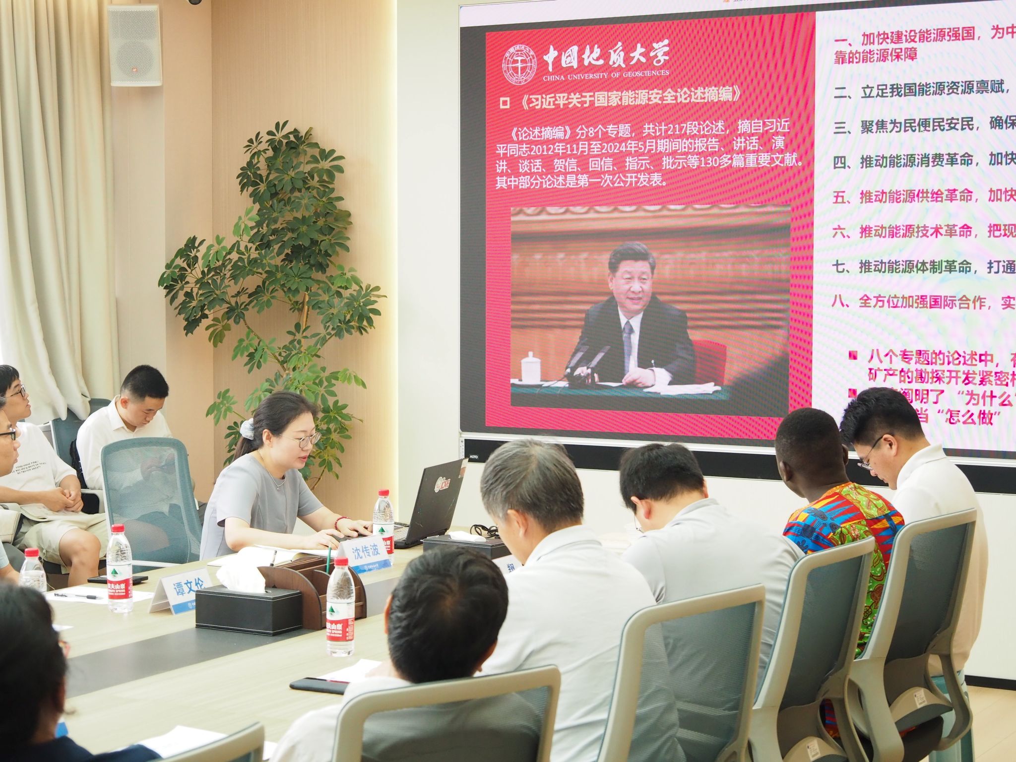 刘昭茜老师领学《习近平关于国家能源安全论述摘编》。她结合《论述摘编》中“能源安全战略与油气资源的重要性”、“油气资源勘探与开发的创新”、“能源供应多元化与油气进口风险”、“油气行业的绿色发展与转型”、“国际能源合作与油气资源的全球布局”五个相关专题,讲述了“能源安全为何重要、我们为什么要建设能源强国、作为太阳成集团tyc234cc主页的师生应当怎么去建设能源强国”。