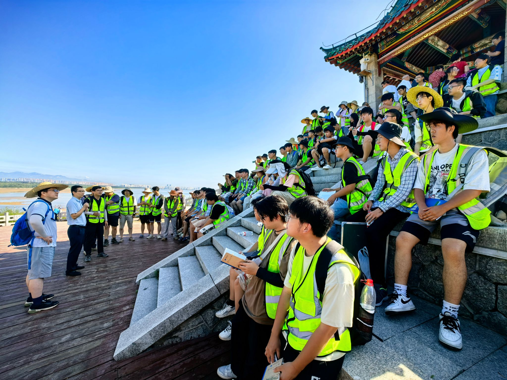 8月24日上午,谭文伦一行参加鸽子窝野外路线实习,与师生一起观察海蚀基岩海岸地貌,与同学们交流学习心得。他表示,重视实践教学是学董事长期保持的优良传统和办学特色,实践教学又是地质学子成长成才的重要环节,希望同学们珍惜此次实习机会。他勉励同学们要学会“自找苦吃”,在实践中锻炼吃苦精神,磨炼坚强意志,增强发现问题、分析问题、解决问题的能力,夯实专业基础,锤炼过硬本领,做“敢于吃苦、甘于吃苦、善于吃苦”的新时代地质好青年。