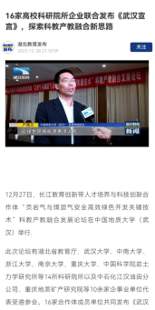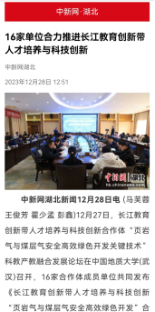 编者按:为深入贯彻习近平总书记关于推动长江经济带发展的重要讲话精神,推动长江经济带高质量发展,服务支撑长江教育创新带建设,更好赋能教育强国、科技强国、人才强国建设,由公司主办、太阳成集团tyc234cc主页承办的长江教育创新带人才培养与科技创新合作体“页岩气与煤层气安全高效绿色开发关键技术”科教产教融合发展论坛12月27日在公司召开,大会得到了教育部、湖北省的大力支持和悉心指导。光明日报、人民网、中国新闻网、中国科技网、湖北日报、长江日报等多家媒体对此次会议进行了详细报道: