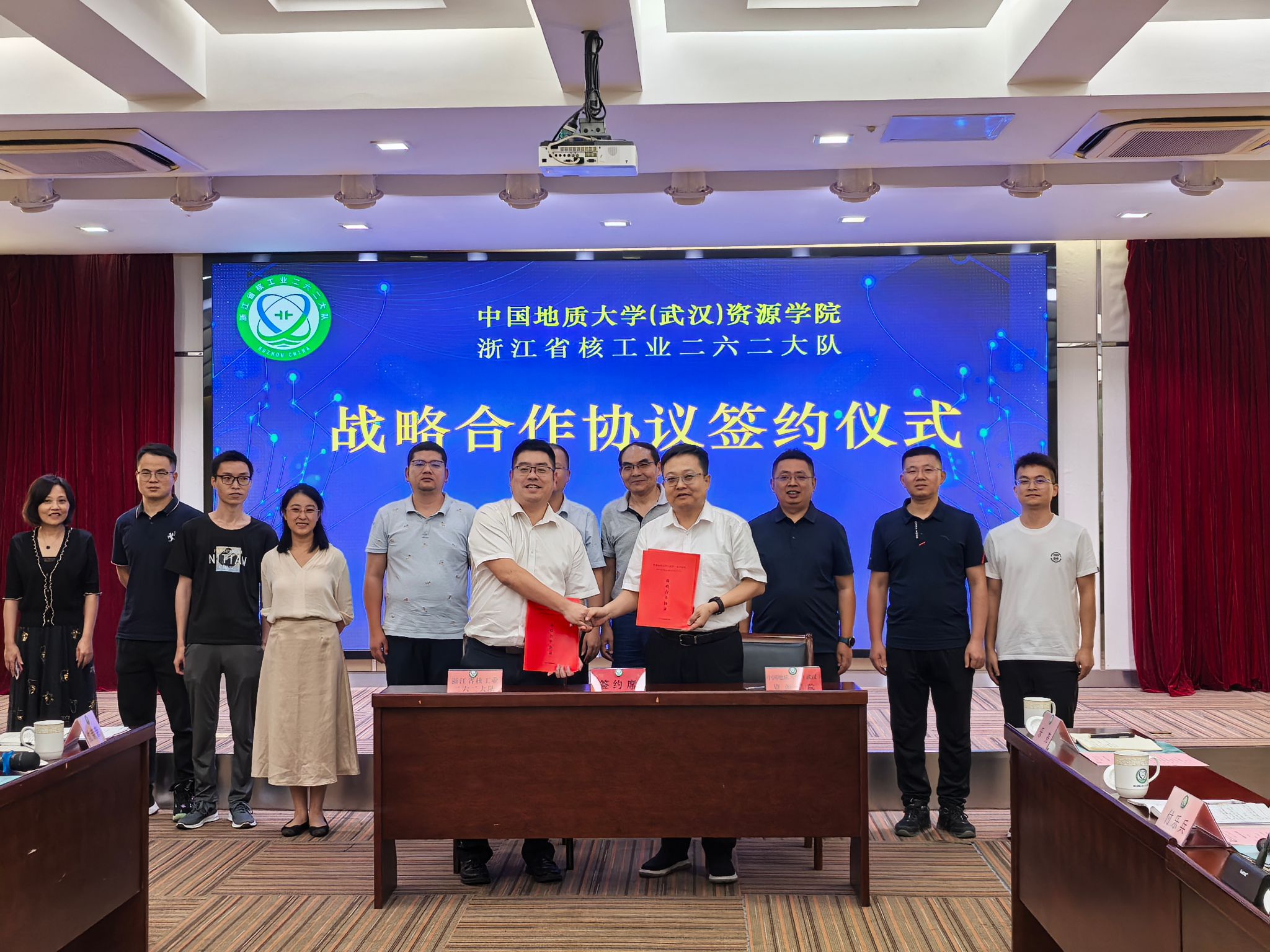 陈焕元感谢地大多年来在人才培养、科技合作上的支持与帮助,介绍了二六二大队情况,并从党建联建共创、合作交流机制、平台建设、成果申报等方面提出合作构想。