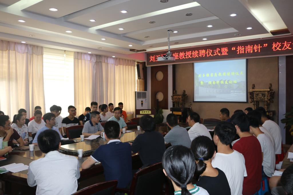 续聘仪式结束后,刘玉强教授做客“指南针”论坛,与师弟师妹共话成长。他以自己工作的经历为主线,勉励师弟师妹们树立信心,热爱专业,努力钻研,敢于吃苦,勤于干事。他指出,地质专业是公司一流学科,前途光明,事业伟大,只要肯投入,有毅力,就一定会有成就。