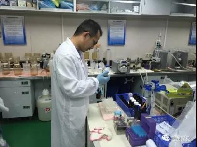 蓝木盛在雪龙船实验室进行浮游生物分析测试