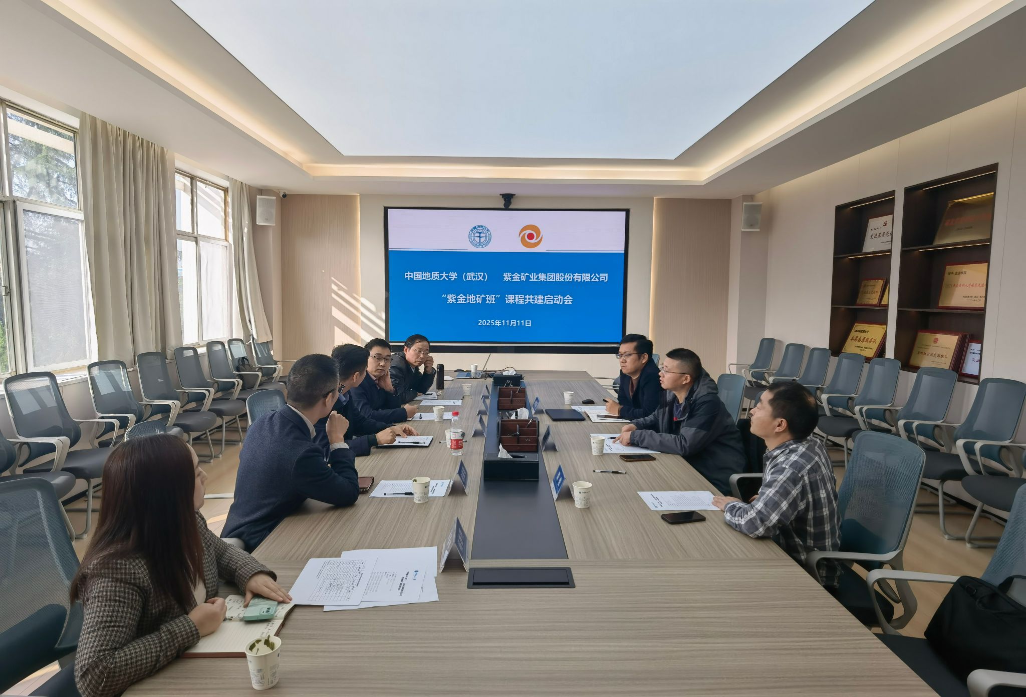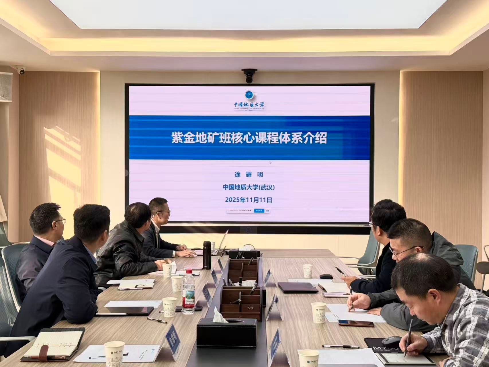 会上,李占轲首先介绍了双方参会团队,着重强调了 “紫金地矿班” 成立的行业背景与班级人才培养目标。随后,资源科学与工程系副主任徐耀明详细解读了 “紫金地矿班” 核心课程体系框架,课程设置紧密结合行业需求,兼顾理论深度与实践应用;重点介绍了校企共建核心课程的团队安排和共建机制,为后续教学开展明确了方向。